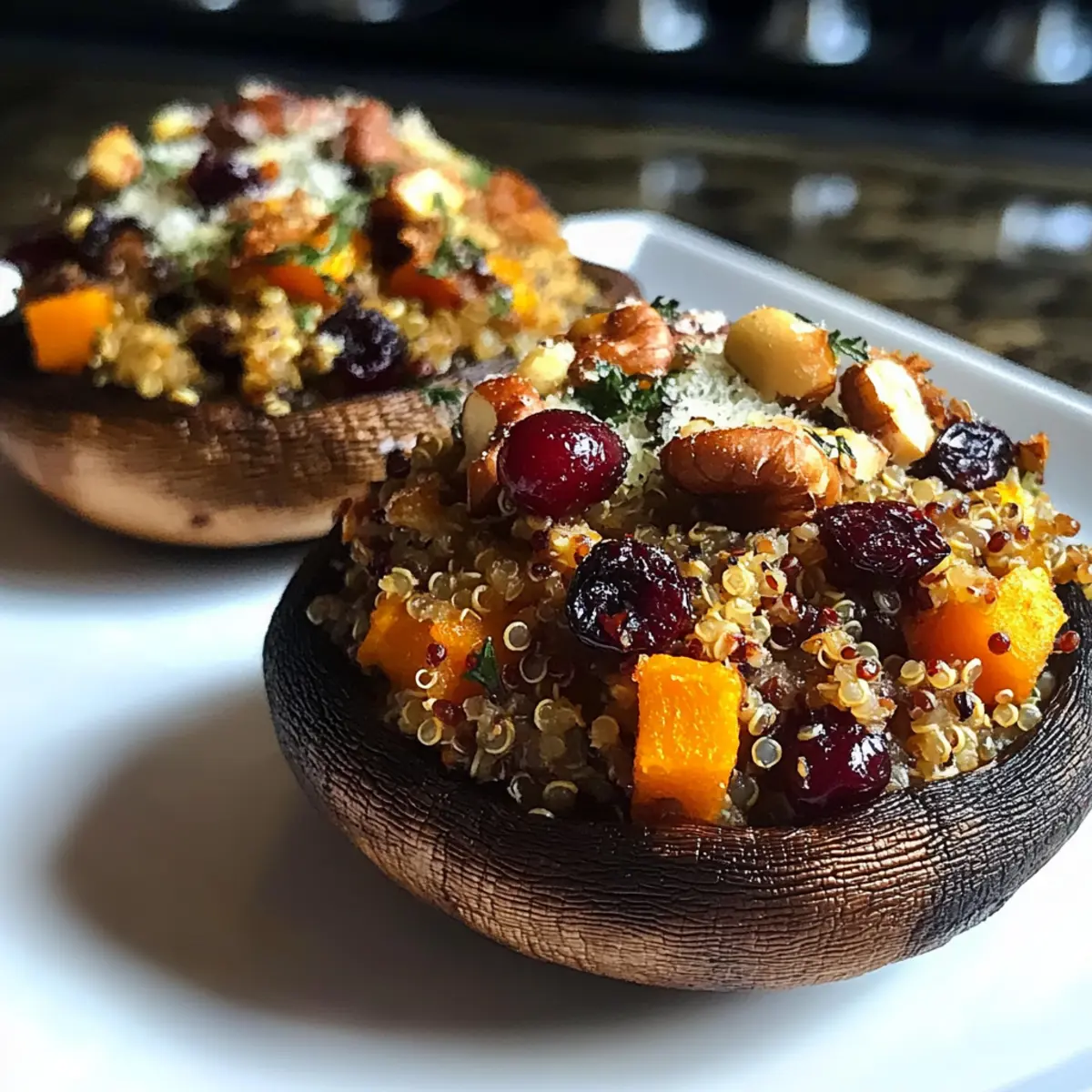 These Autumn Harvest Stuffed Portobello Mushrooms are a fantastic option for meal prep, saving you time during busy weekdays. You can prepare the stuffing (quinoa, butternut squash, cranberries, and walnuts) and refrigerate it for up to 3 days in advance, allowing the flavors to meld beautifully. To maintain quality, keep the mushrooms unstuffed until you’re ready to bake, so they stay tender. When you’re ready to serve, simply stuff the mushrooms with the prepped filling, sprinkle with parmesan, and bake at 375°F (190°C) for 20-25 minutes until golden. This way, you’ll enjoy a wholesome, satisfying meal with minimal effort!