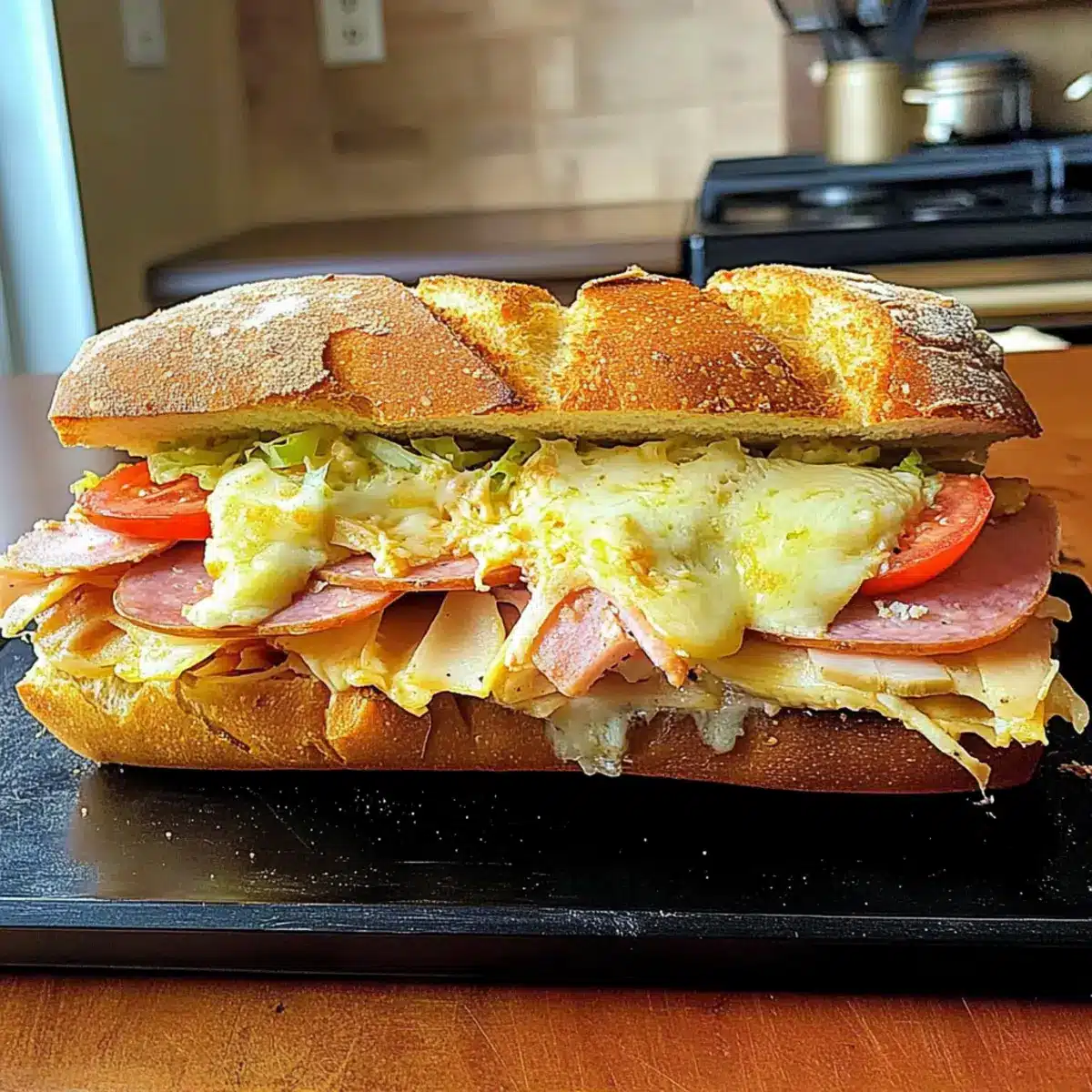 The beauty of this sandwich is its versatility! Feel free to substitute different deli meats like turkey or roast beef, or mix in grilled vegetables such as bell peppers or zucchini for a healthier option. You can also try different cheeses or add more flavorful toppings like olives or balsamic glaze to cater to various palates.