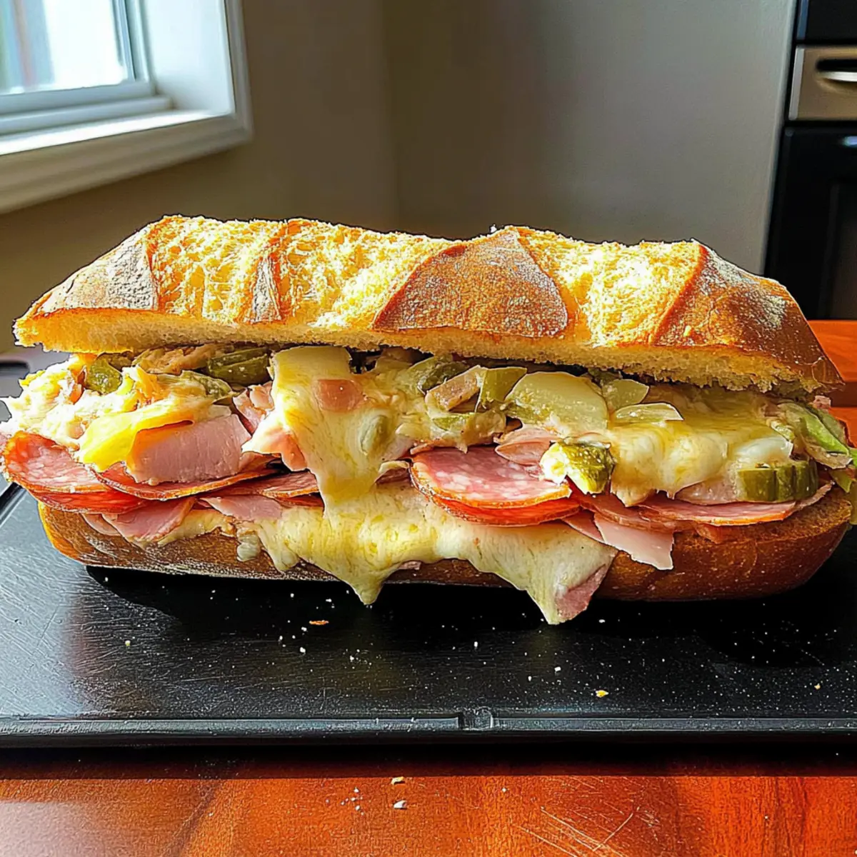 When preparing the Baked Italian Grinder Sandwich, consider any allergies among your guests. The deli meats and cheeses can be tailored to accommodate individual dietary preferences, including gluten-free or low-fat options. For pets, avoid sharing any portion that contains onions or garlic, as these can be harmful to them.