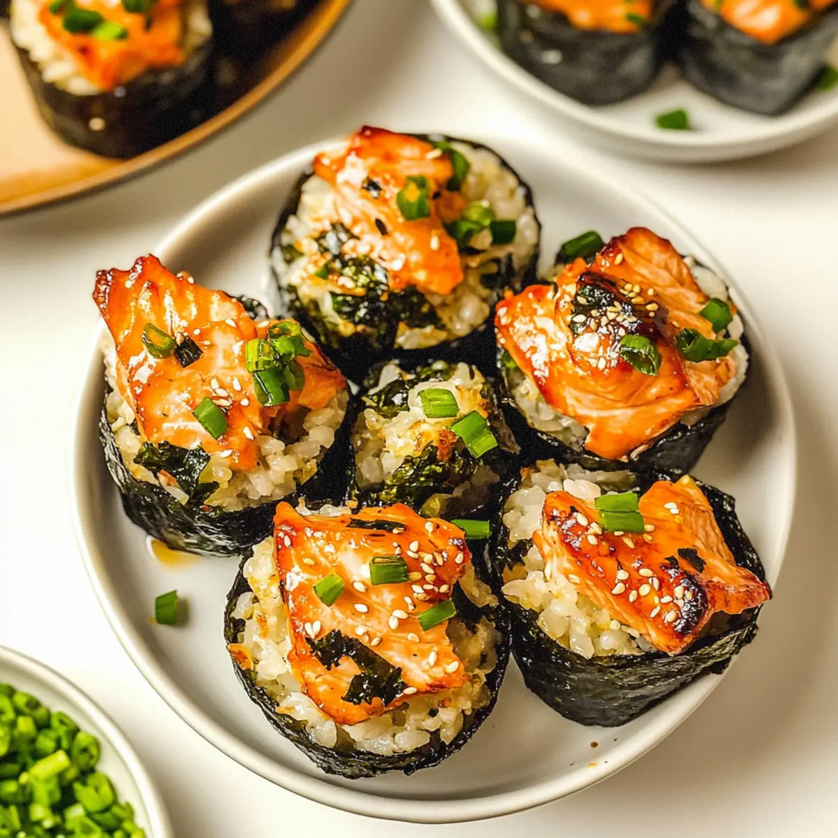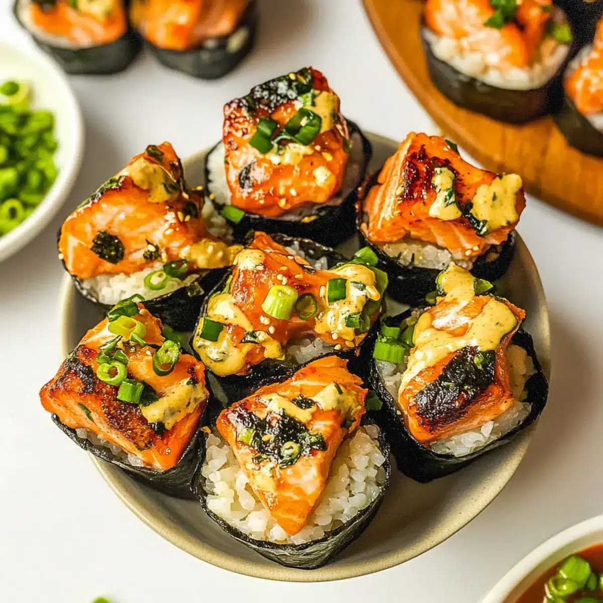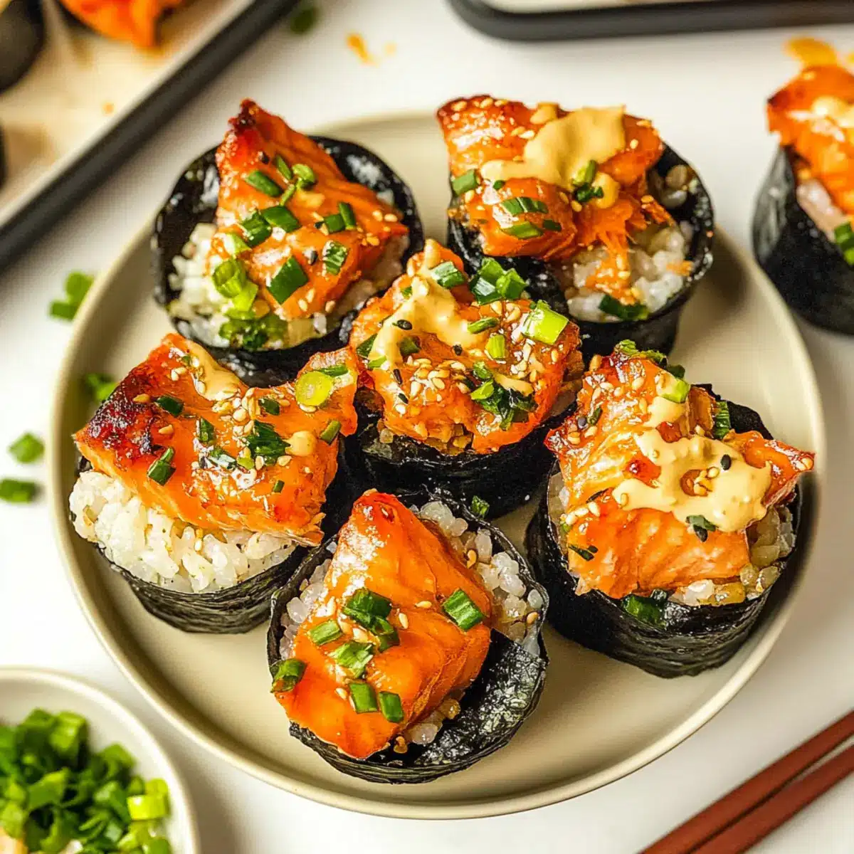 Flavor Explosion: Add diced jalapeños or a sprinkle of chili flakes to the salmon mixture for an extra layer of heat that sushi lovers adore.
