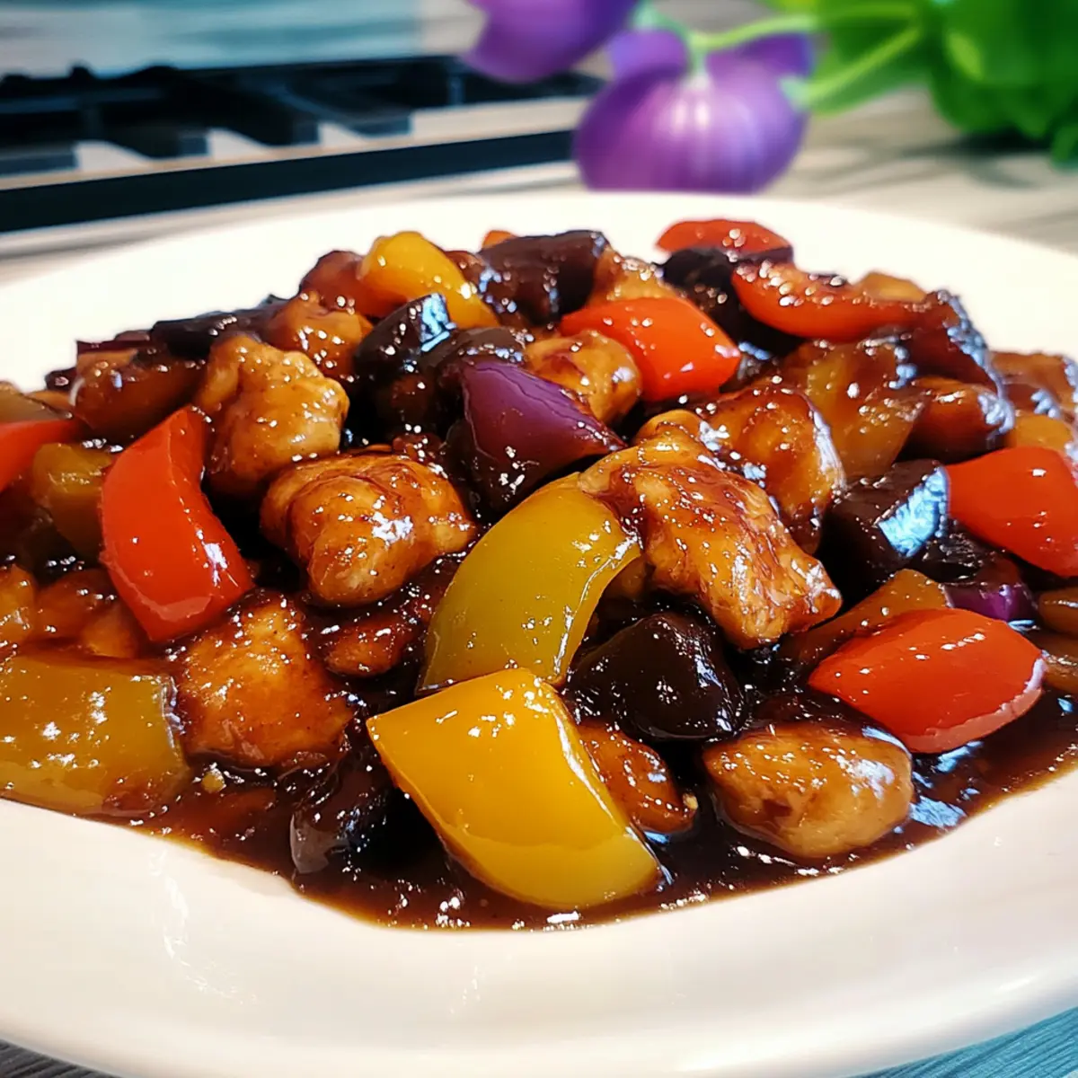 Transform your dinner routine with this delightful Black Vinegar Chicken with Bell Peppers and Eggplant!