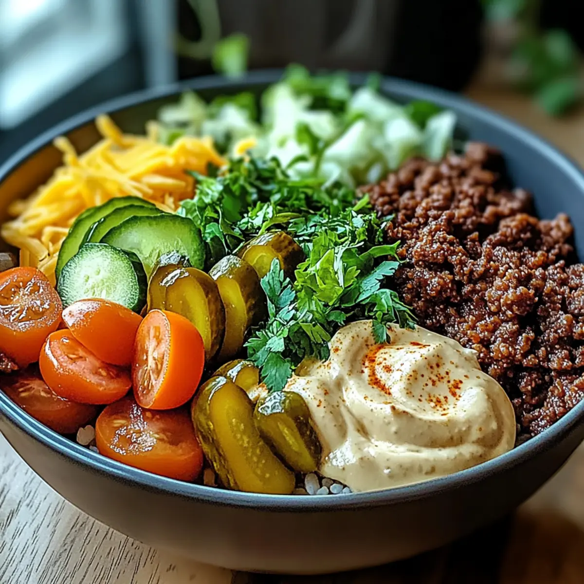 Now it’s time to serve your delightful Burger Bowls! You can enjoy them directly from the bowl for a casual meal, or you can plate them elegantly for those special occasions. Either way, indulge immediately while the ingredients are fresh and the cheese is still melty, inviting everyone to dig in.