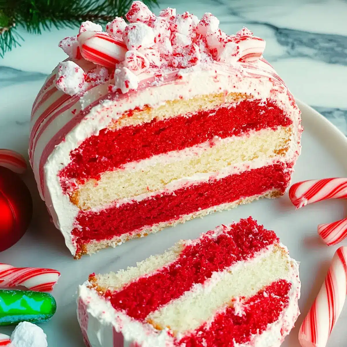 Festive Appeal: The Candy Cane Striped Cake is visually stunning, making it a showstopper for your holiday dessert table that will leave everyone marveling.