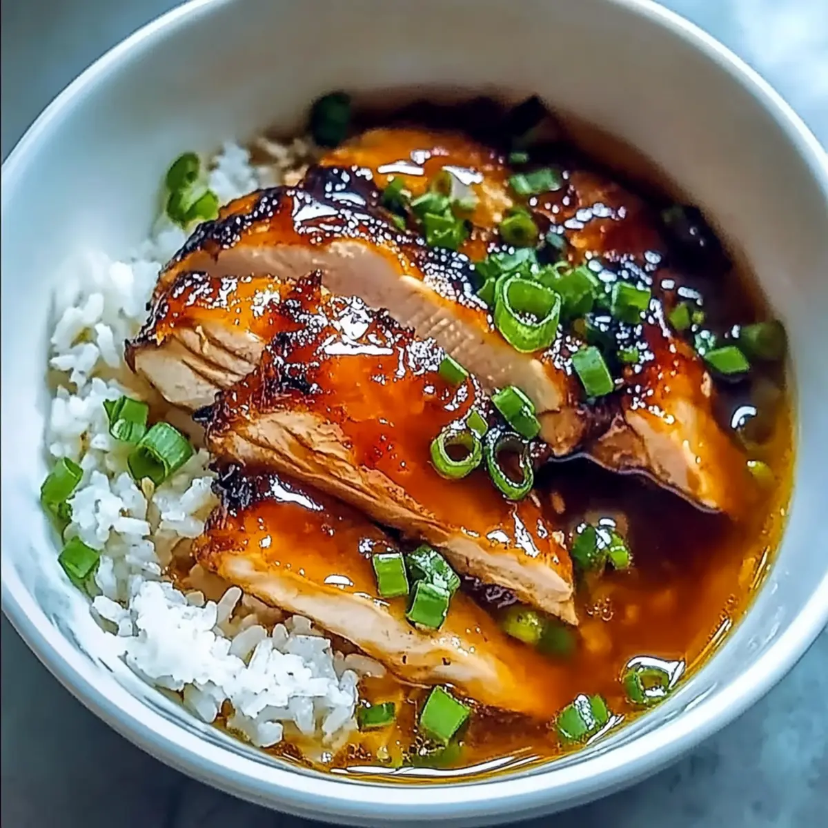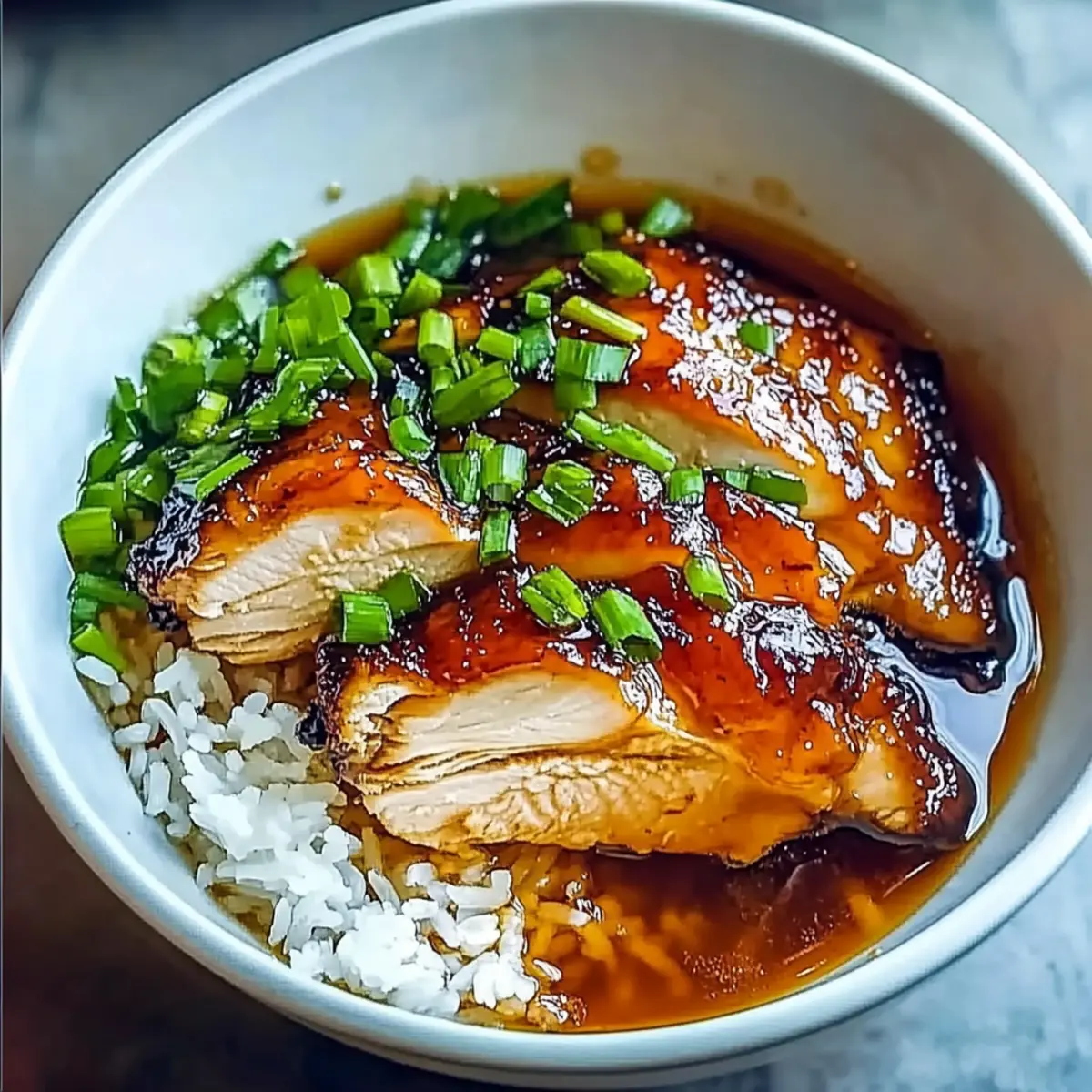 To serve, place a generous portion of fluffy jasmine rice in a bowl, then ladle the caramelised chicken and fragrant broth over the top. Garnish with sliced green onions for a fresh, vibrant touch that adds color to your dish. Enjoy this comforting meal with family or friends!