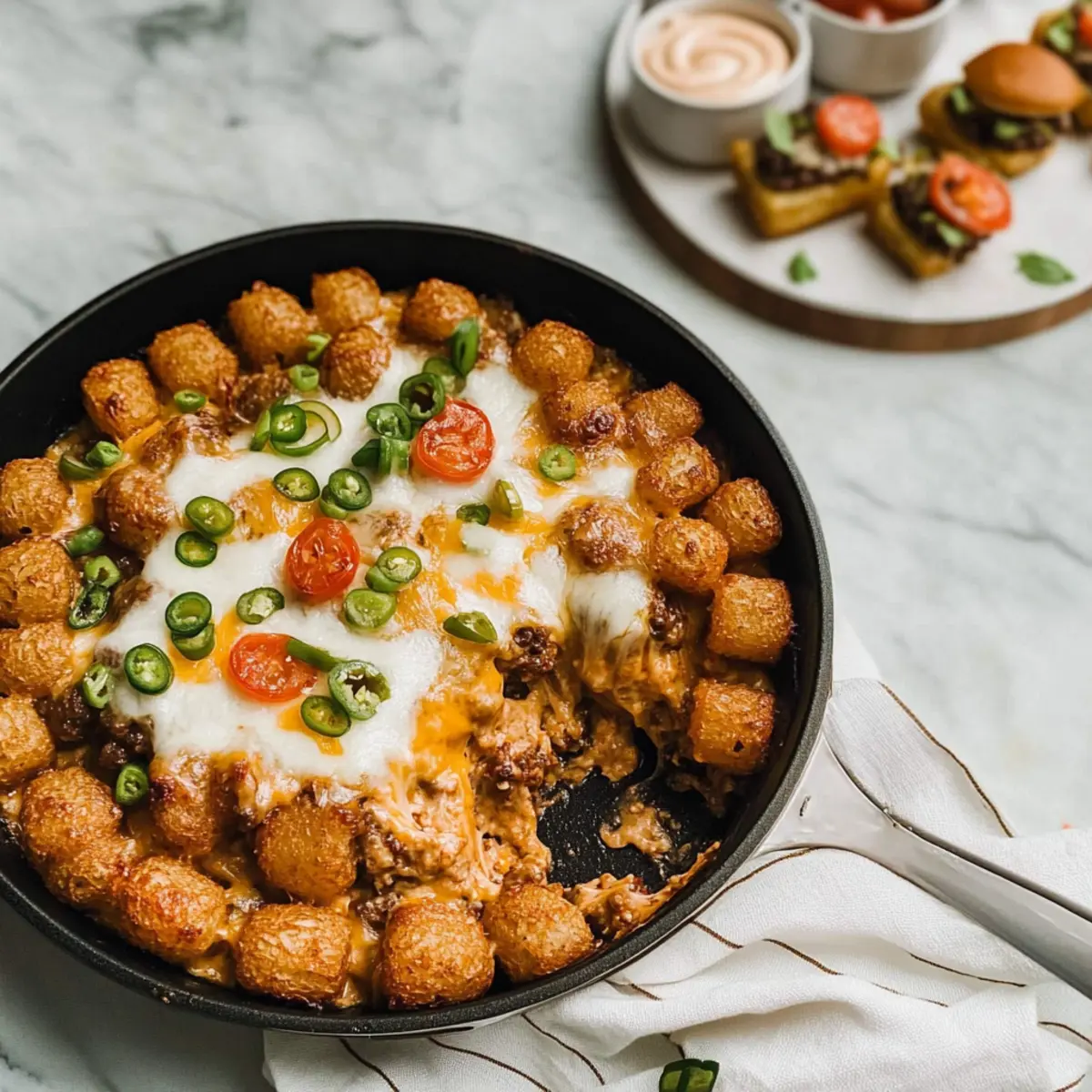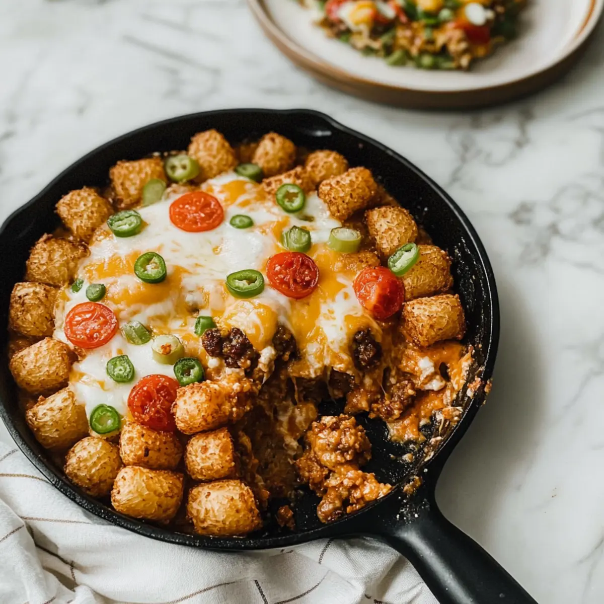 Low-Carb Option: Replace tater tots with cauliflower tots for a low-carb version without sacrificing that crunchy topping you love. This makes for a lighter dish that still feels indulgent!