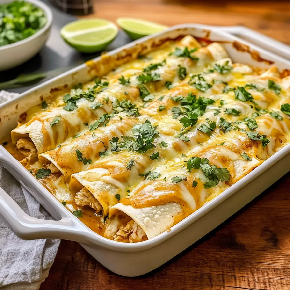 Garnish for Freshness: Top your Chicken Enchiladas with fresh cilantro or avocado slices just before serving to add a refreshing touch that brightens the dish.