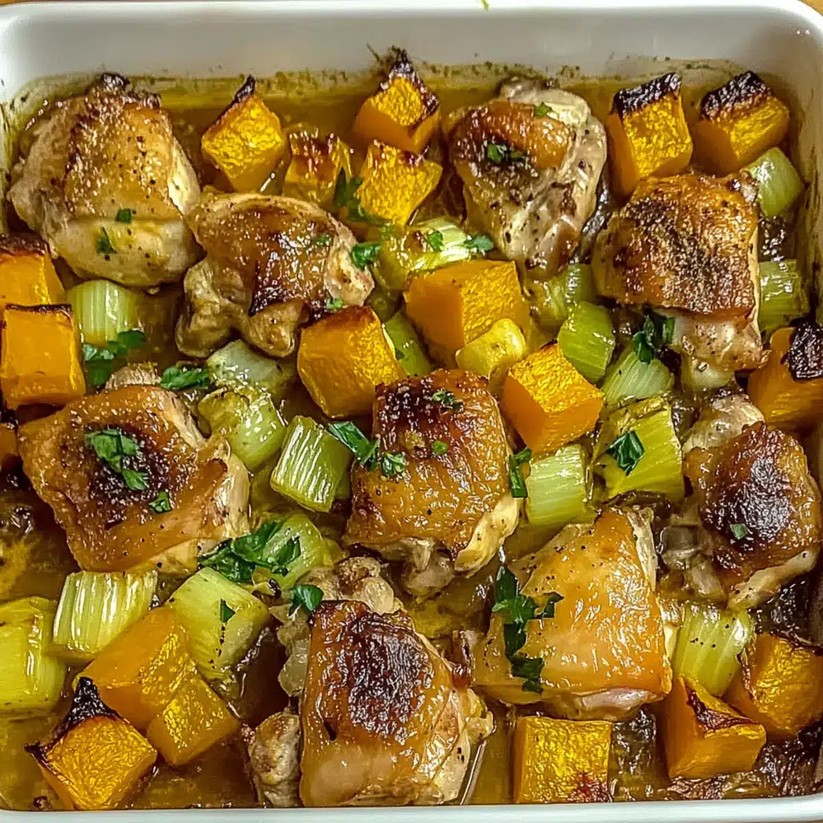 As I stood in my kitchen, the first chill of autumn slipped through the window, drawing me to a comforting favorite: the Hearty Roasted Chicken Leek and Butternut Squash Bake. This delightful one-pot meal combines succulent chicken thighs, creamy butternut squash, and aromatic leeks, enveloping your space in a cozy hug of enticing aromas. It’s not just about satisfying hunger; this hearty dish shines for its minimal prep and effortless clean-up, making it perfect for those busy weeknights when you crave a loving home-cooked meal. And the best part? You can easily customize it to suit your taste, swapping in different proteins or seasonal veggies for a personalized touch. Ready to dive into this delicious fall favorite? Let’s get cooking!