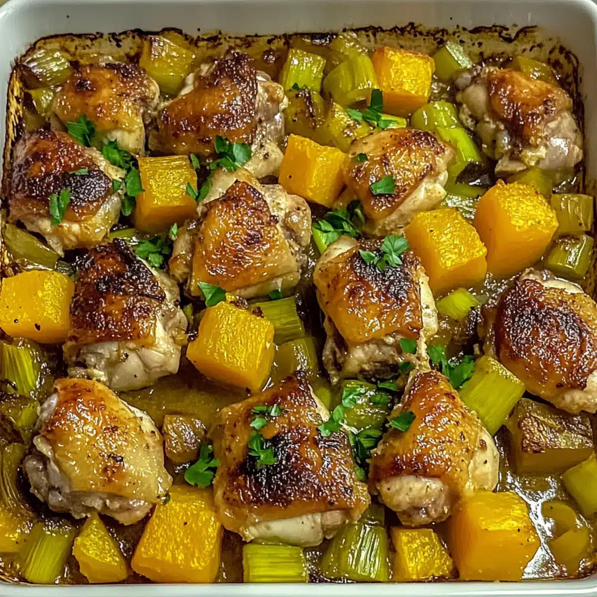 Serving Suggestions: When ready to serve, top the reheated dish with fresh parsley for an added burst of flavor and color, enhancing your delightful Chicken Leek & Butternut Bake experience!