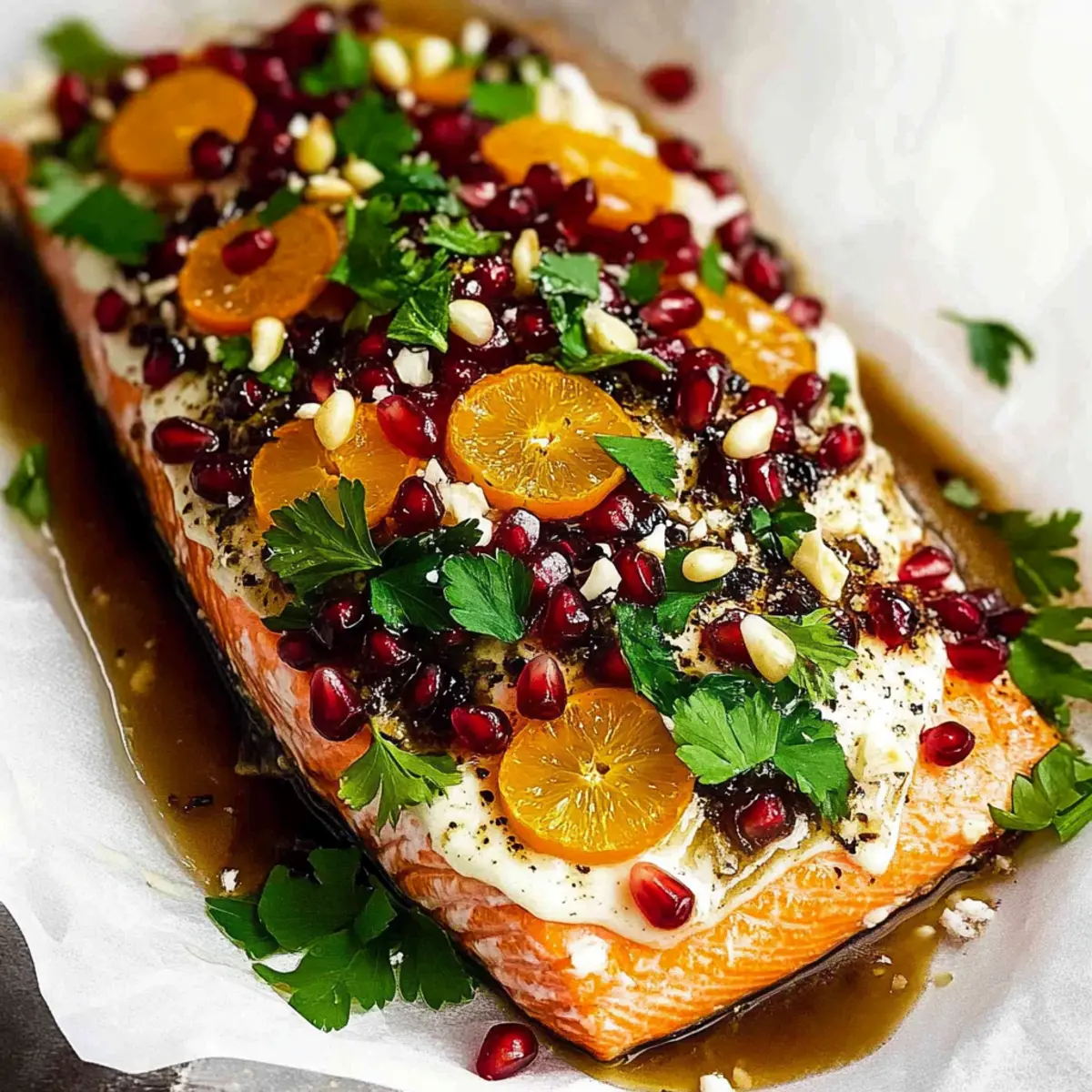 Spicy Pomegranate Salmon: Add chili flakes to the glaze for a gentle heat that balances the sweetness. This twist is for those who enjoy a little kick in their holiday meal.