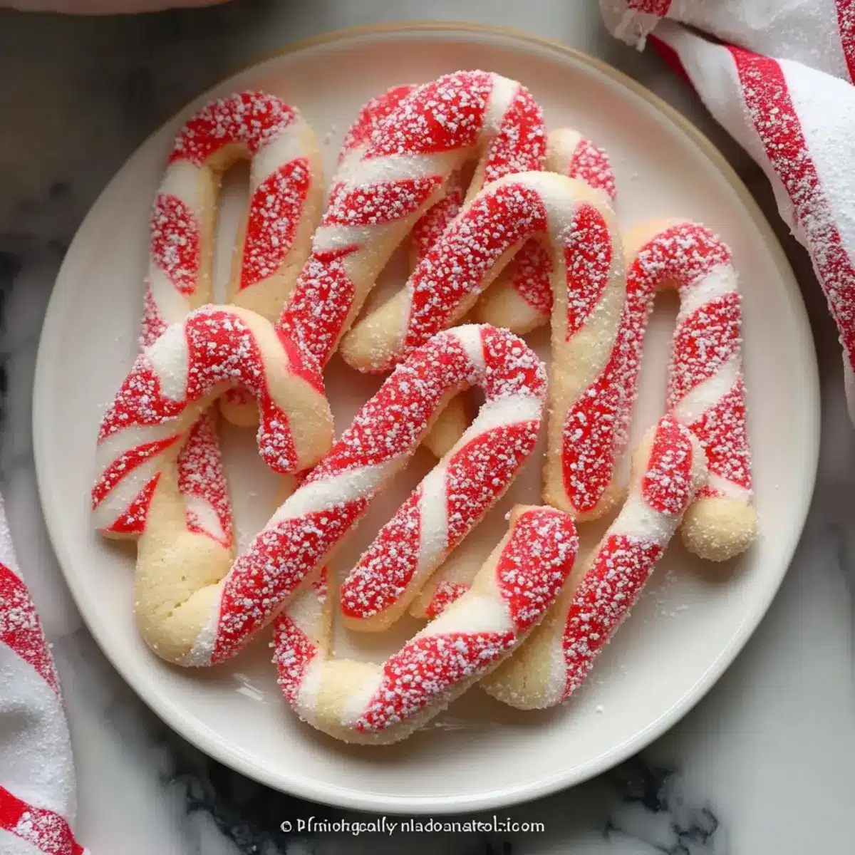 After baking, allow the cookies to cool on the baking sheet for about 5 minutes before transferring them to a wire rack. This resting period lets them firm up while still warm, making them easier to handle without losing their beautiful candy cane shapes.