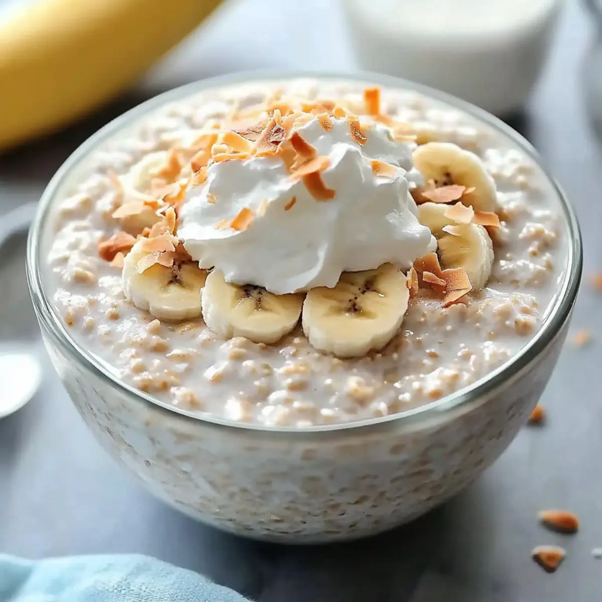 These Coconut Cream Pie Overnight Oats are a fantastic option for meal prep, saving you precious time on busy mornings! You can prepare the oat mixture up to 3 days in advance by combining rolled oats, coconut milk, Greek yogurt, shredded coconut, maple syrup, vanilla extract, cinnamon, and salt in jars. Seal them tightly and refrigerate. To maintain the creamy texture and flavor, ensure the oats are fully submerged in liquid. When you’re ready to serve, simply stir the oats well and top with sliced bananas and whipped cream if desired. This way, you’ll enjoy a delightful breakfast that’s just as delicious as freshly made!