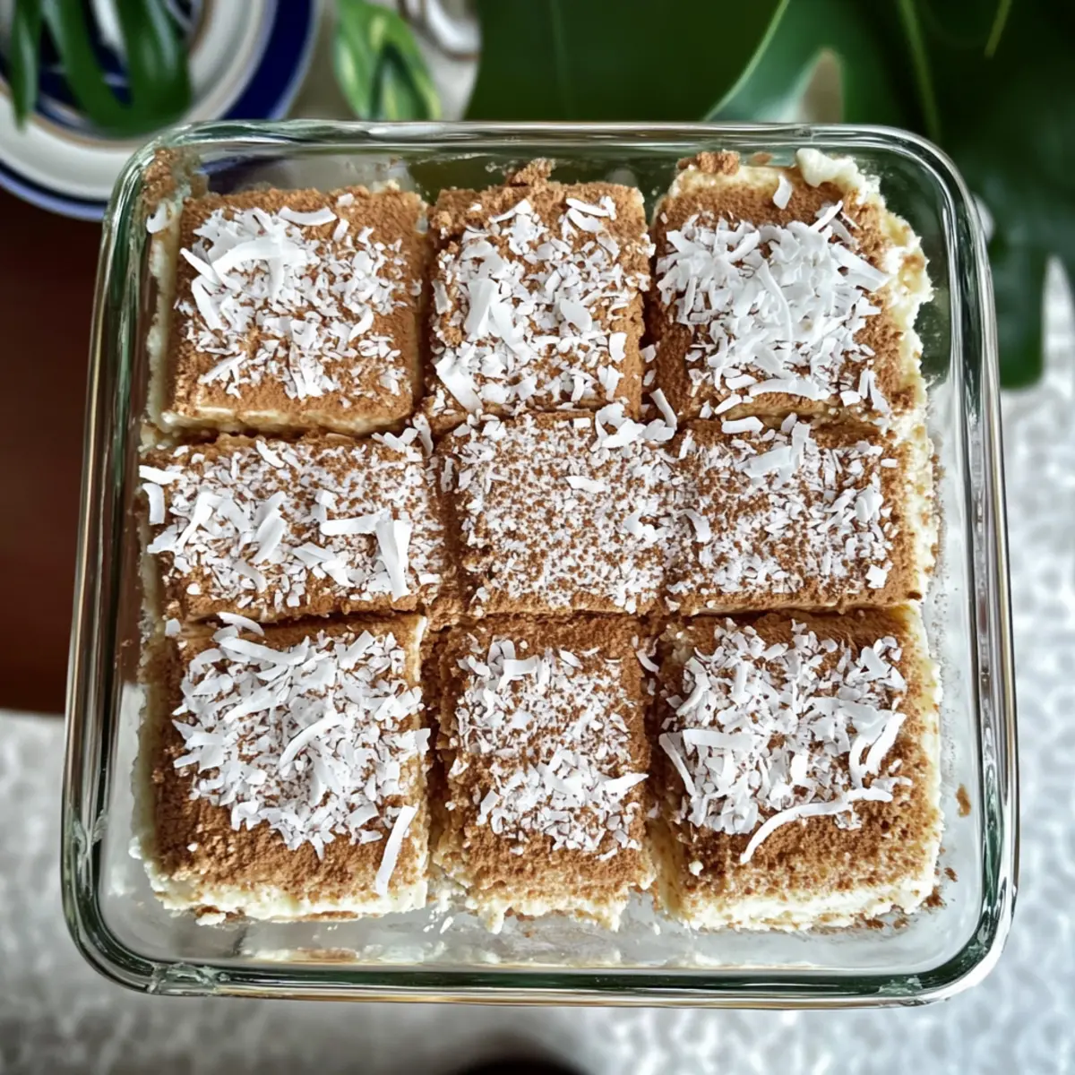 - Top with the rest of the coconut flakes, sift a light dusting of cinnamon, cover with plastic wrap, and refrigerate for at least 12 hours.