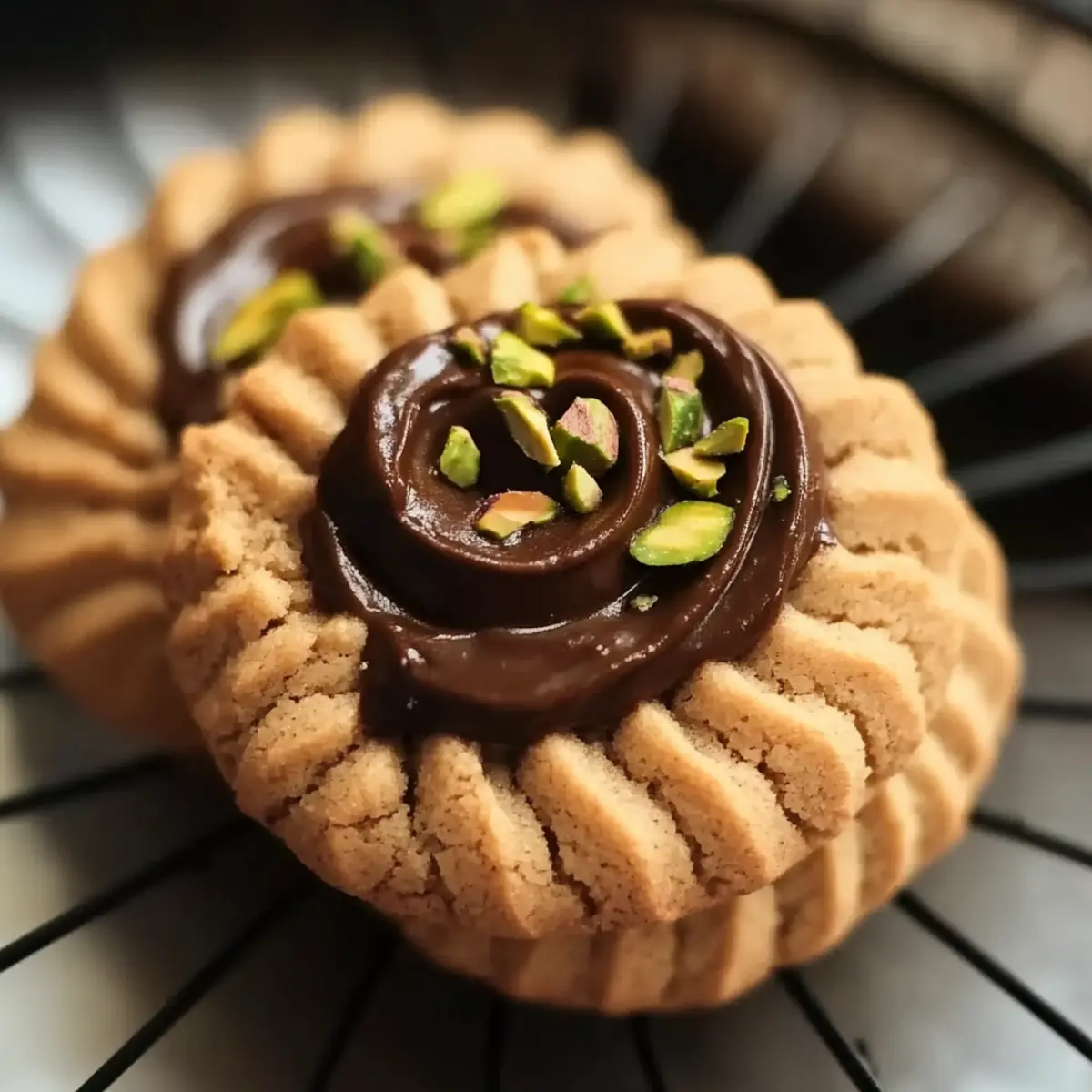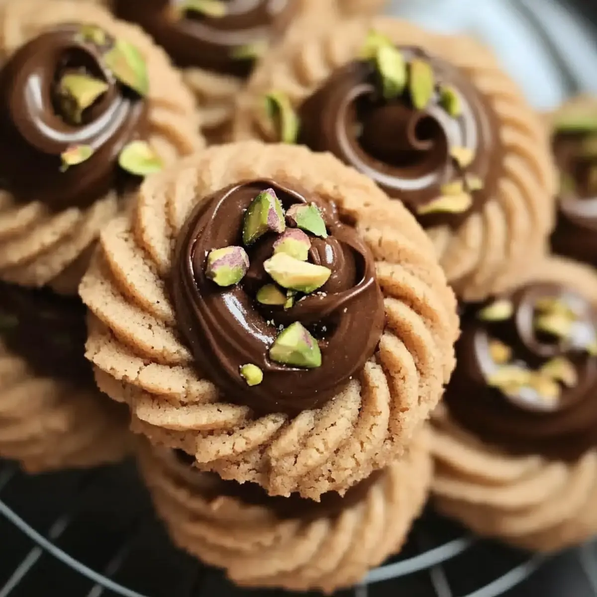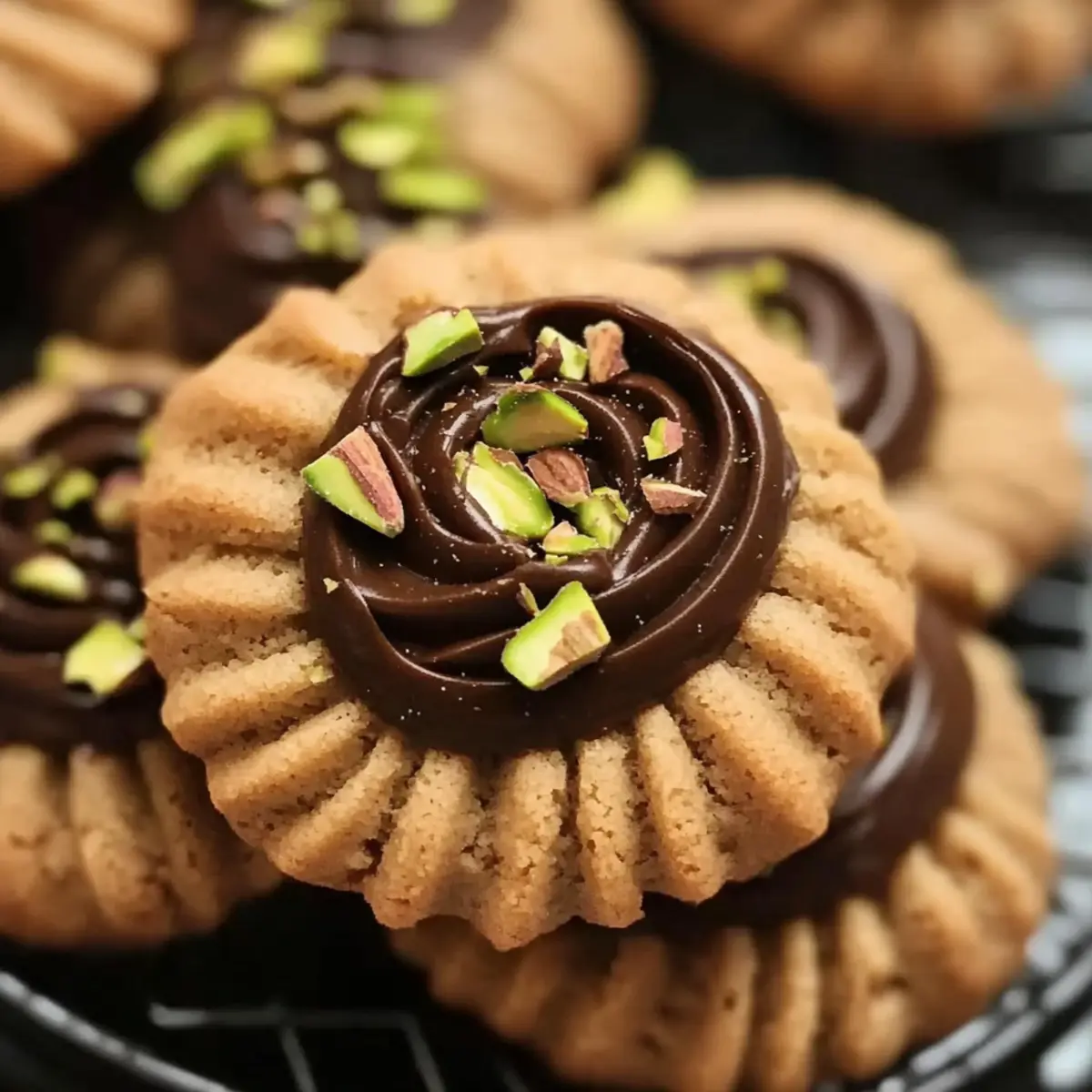 - Allow cookies to cool, then dip edges in melted dark chocolate and sprinkle with chopped pistachios.