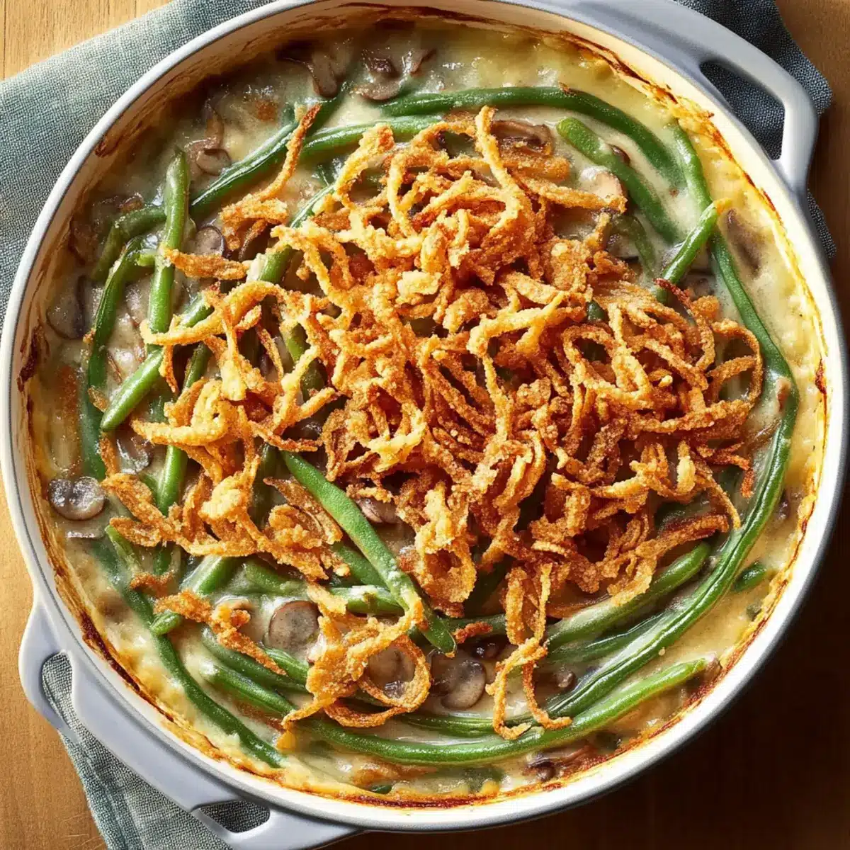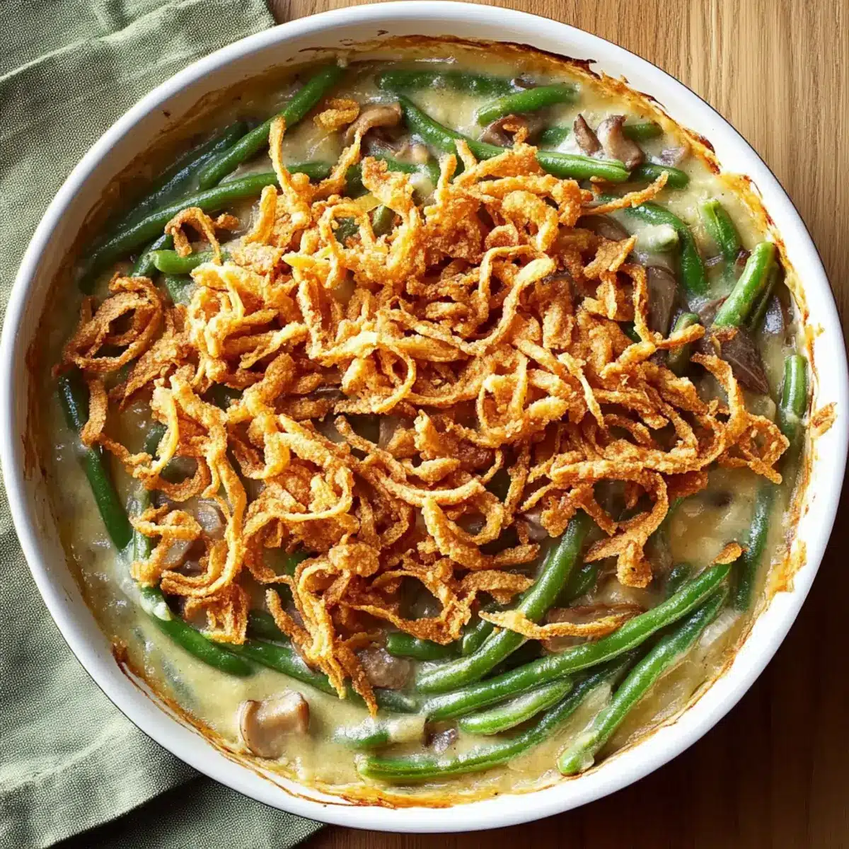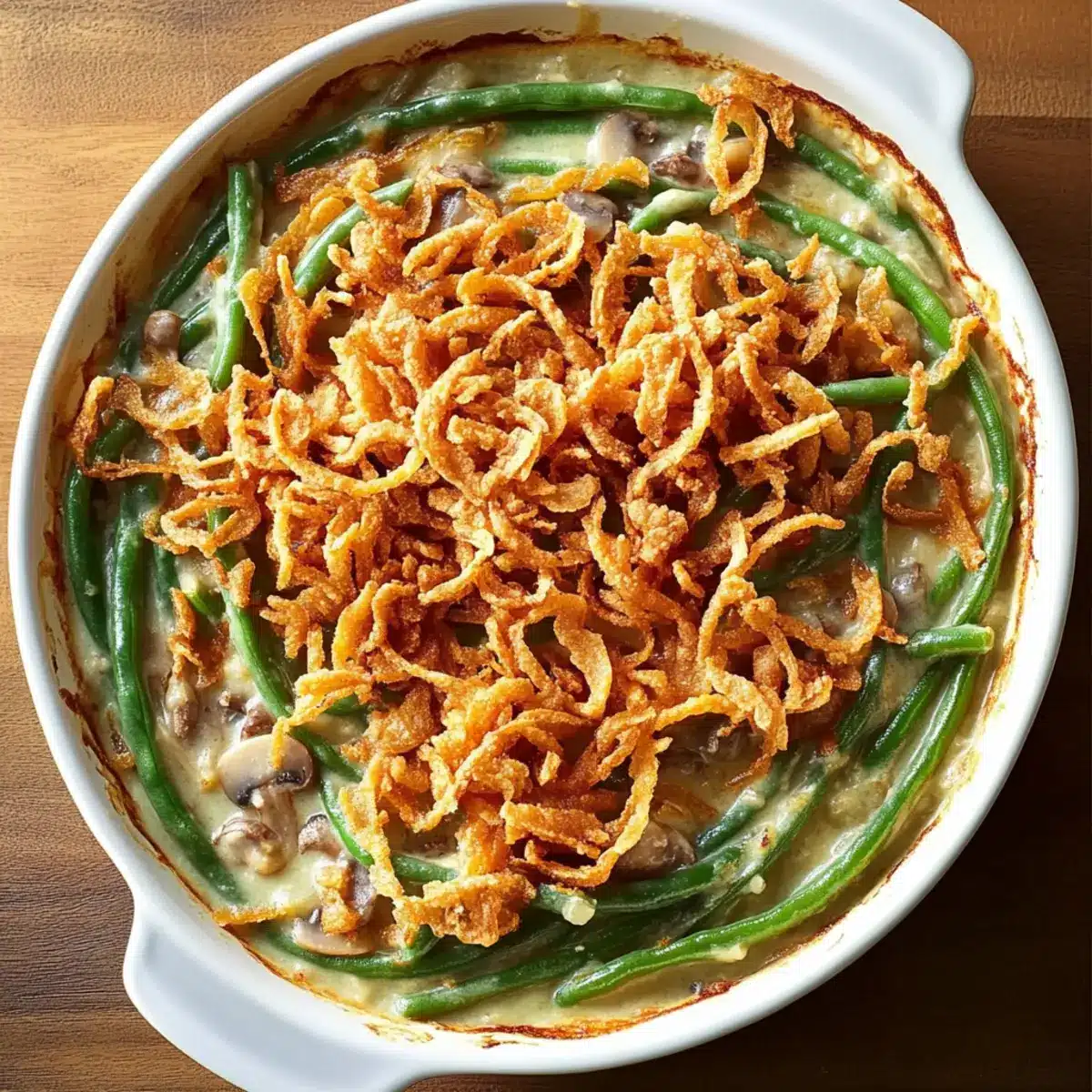 - Layering Crunch: For an extra crispy topping, add the fried onions in two layers—this not only enhances texture but makes your casserole visually appealing too!
