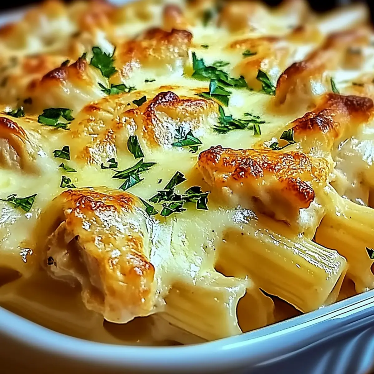Remove the baking dish from the oven and let it rest for 5-10 minutes before serving. This resting time allows the flavors to meld beautifully. Garnish your Cozy Creamy Chicken Mozzarella Pasta with a sprinkle of fresh parsley for a colorful touch, then dig in while it’s warm!