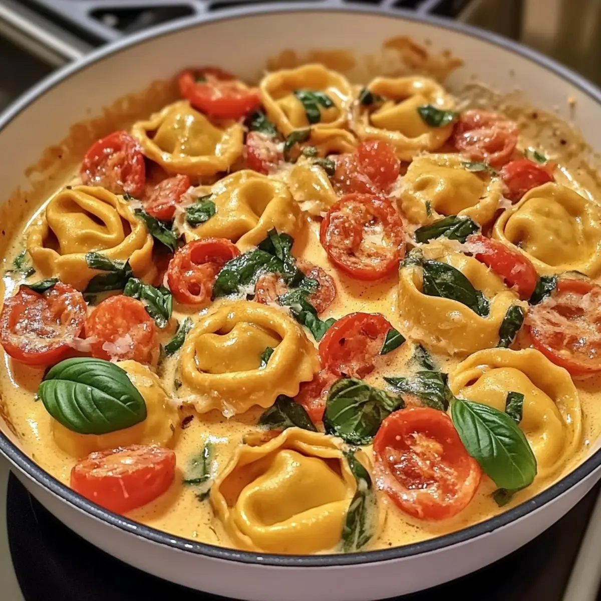 Cozy Creamy Tortellini with Tomatoes for a Warm Dinner Treat