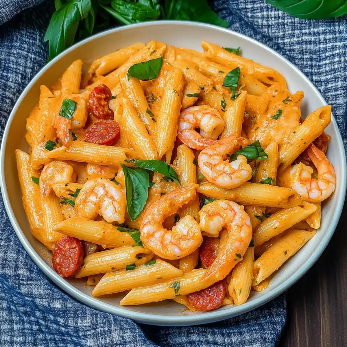 Just before serving, tear fresh basil leaves and stir them gently into the creamy chorizo and prawn pasta for a pop of color and aroma. Spoon the pasta onto plates or into bowls, making sure to include plenty of sauce. Be ready to enjoy this delightful dish that’s perfect for your midweek meals!