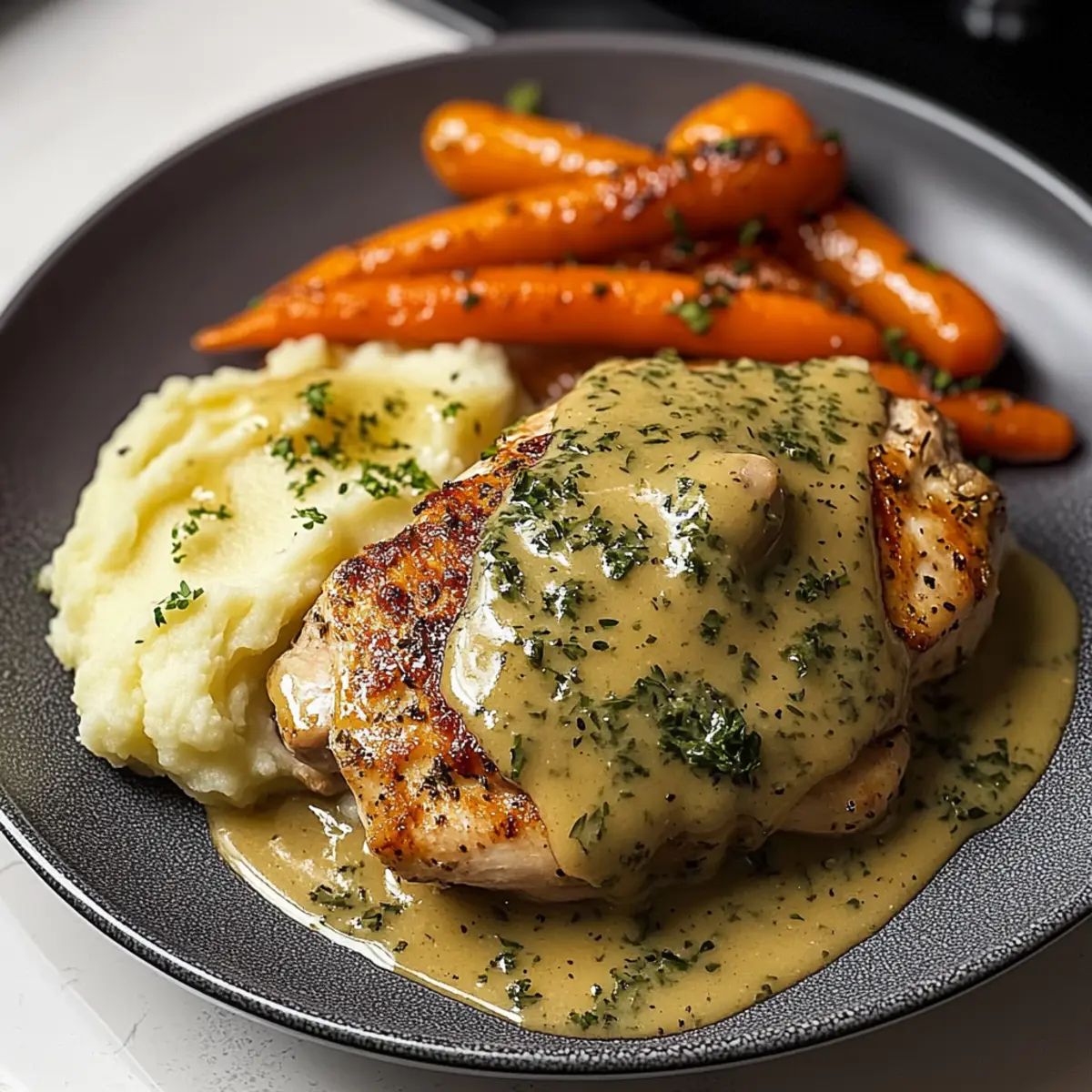 Creamy Herb Chicken with Mashed Potatoes & Glazed Carrots Bliss