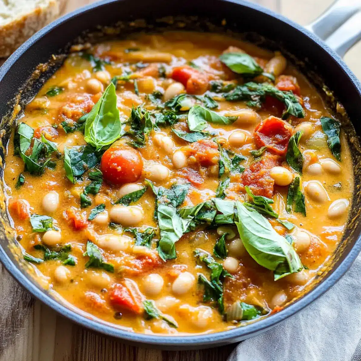 As I stood at the stove, the familiar aroma of sautéing garlic filled my kitchen, instantly bringing me to a comforting solace. Today, I’m excited to share my beloved recipe for Creamy Tomato White Bean Stew, a delightful vegan dish that’s not just easy to prepare but also perfect for any hectic day. Within just 25 minutes, you can savor a hearty, nourishing meal packed with juicy cherry tomatoes and velvety white beans, making it an ideal choice for lunch or dinner. Plus, it’s gluten-free, ensuring that everyone can enjoy it. Whether you’re winding down after a busy day or entertaining friends, this stew is a crowd-pleaser that will warm hearts and bellies alike. Curious about how to whip up this delicious comfort food? Let’s dive into the recipe!