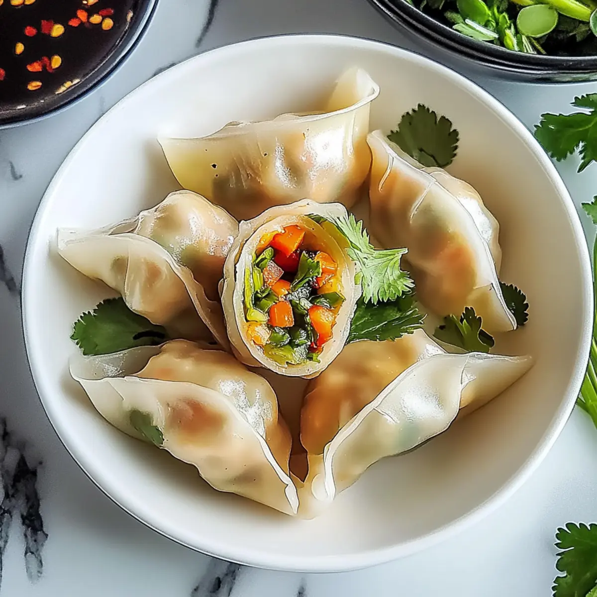 Herb Swap: Substitute cilantro with fresh basil or mint for a fragrant twist. The aromatic notes can elevate the dumplings into a refreshing treat, perfect for warm days or when paired with a light cucumber salad.