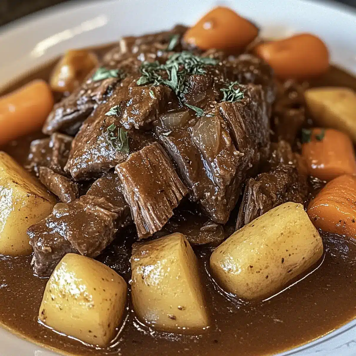 As I stirred the simmering pot, the inviting aroma of the Crock Pot Chuck Roast filled my kitchen, instantly transforming it into a warm haven. This dish is not just food; it’s a tradition that brings families together, especially on those busy weekdays or during festive gatherings. The beauty of this slow cooker recipe lies in its effortless preparation—just layer in your ingredients and let time work its magic while you manage life’s little chaos. With tender chunks of chuck roast enveloped in a rich sauce alongside vibrant vegetables, it’s the ultimate comfort food that will have everyone coming back for seconds. Are you ready to bring this hearty delight to your family table?
