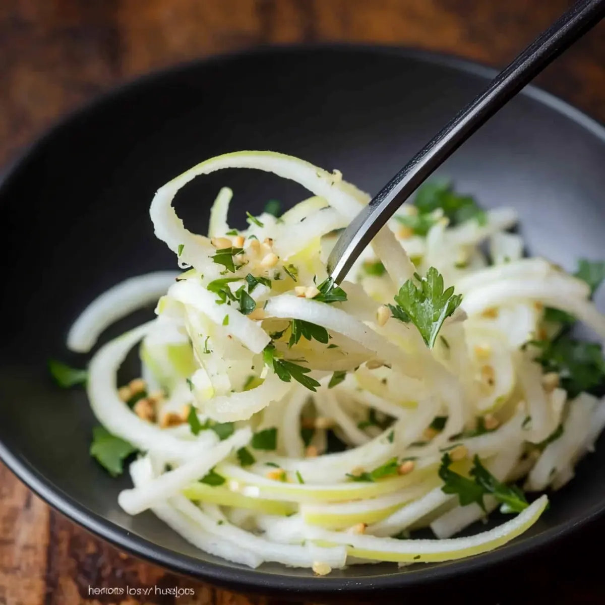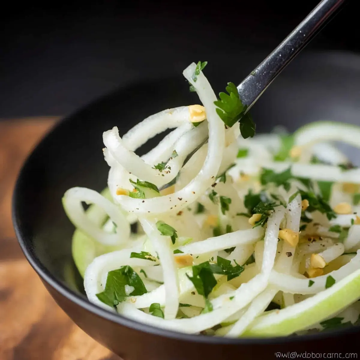 Refreshing, this salad is a taste of spring on your plate, bringing bright flavors and a crisp texture that awakens your senses. Quick preparation means you can have this delightful dish ready in no time, perfect for busy weekdays or surprise guests. Nutritious and versatile, it’s gluten-free, vegan, and paleo-friendly, making it ideal for various dietary preferences. Unique twist, the combination of daikon and green apple offers an unexpected and delicious contrast that’s sure to impress. Serve it alongside grilled chicken or fish for a satisfying meal, or enjoy it solo for a light lunch that won’t weigh you down.