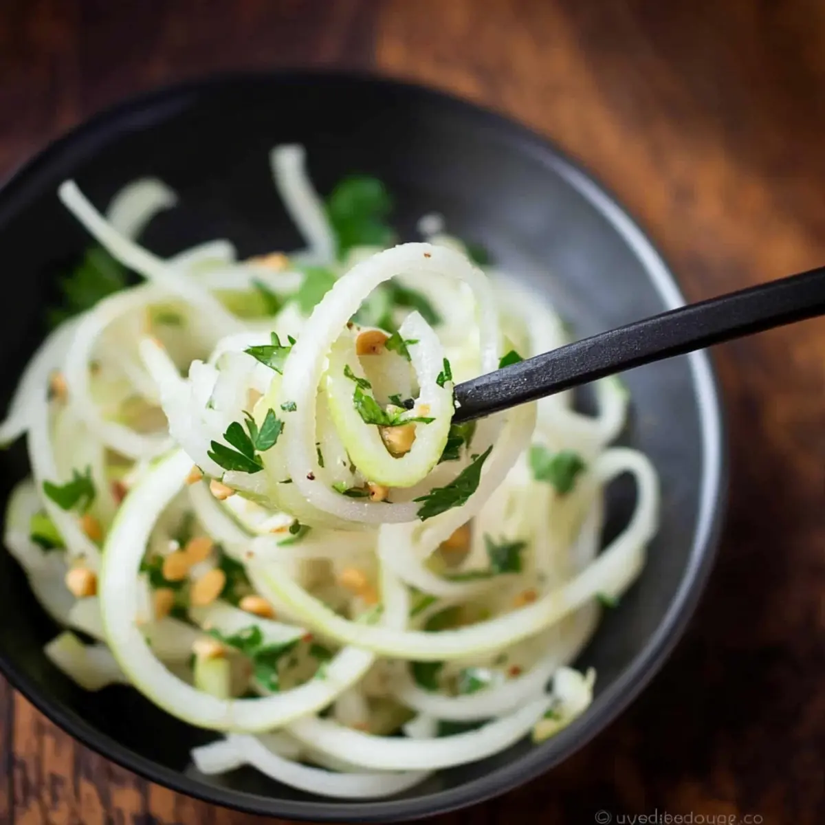 Spiralizing Technique: Use a spiralizer, julienne peeler, or box grater for perfectly shredded daikon. This helps to maintain a light texture in the daikon salad and makes it visually appealing.