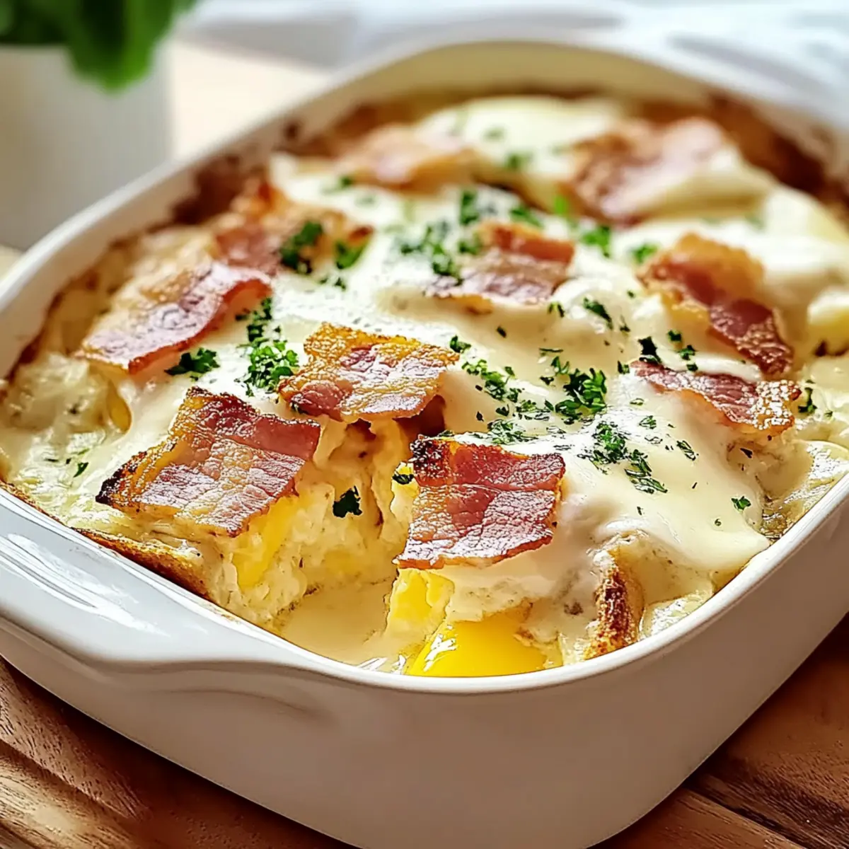 Once baked to perfection, remove the casserole from the oven and let it rest for 10-15 minutes. This resting time allows the layers to stabilize, making it easier to slice. Right before serving, sprinkle fresh herbs like chives or parsley on top for a pop of color and added flavor, making your brunch centerpiece even more inviting.