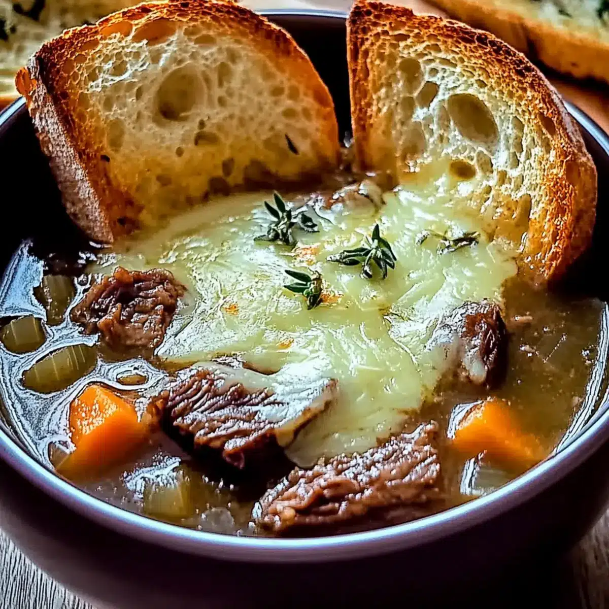 As I stood in my kitchen, the enticing scent of caramelized onions began to weave its way through my home, creating an atmosphere of warmth and comfort that only a hearty meal can provide. This French Onion Short Rib Soup with Gruyère Toast is my go-to recipe for those chilly evenings when I crave something indulgent yet surprisingly easy to prepare. It combines the rich flavors of tender short ribs with the sweetness of slow-cooked onions, resulting in a dish that’s not only a labor of love but also a delightful crowd-pleaser. Plus, it’s perfect for meal prep, allowing you to enjoy homemade comfort food throughout the week. Ready to dive into a bowl of pure coziness? Let’s get started!