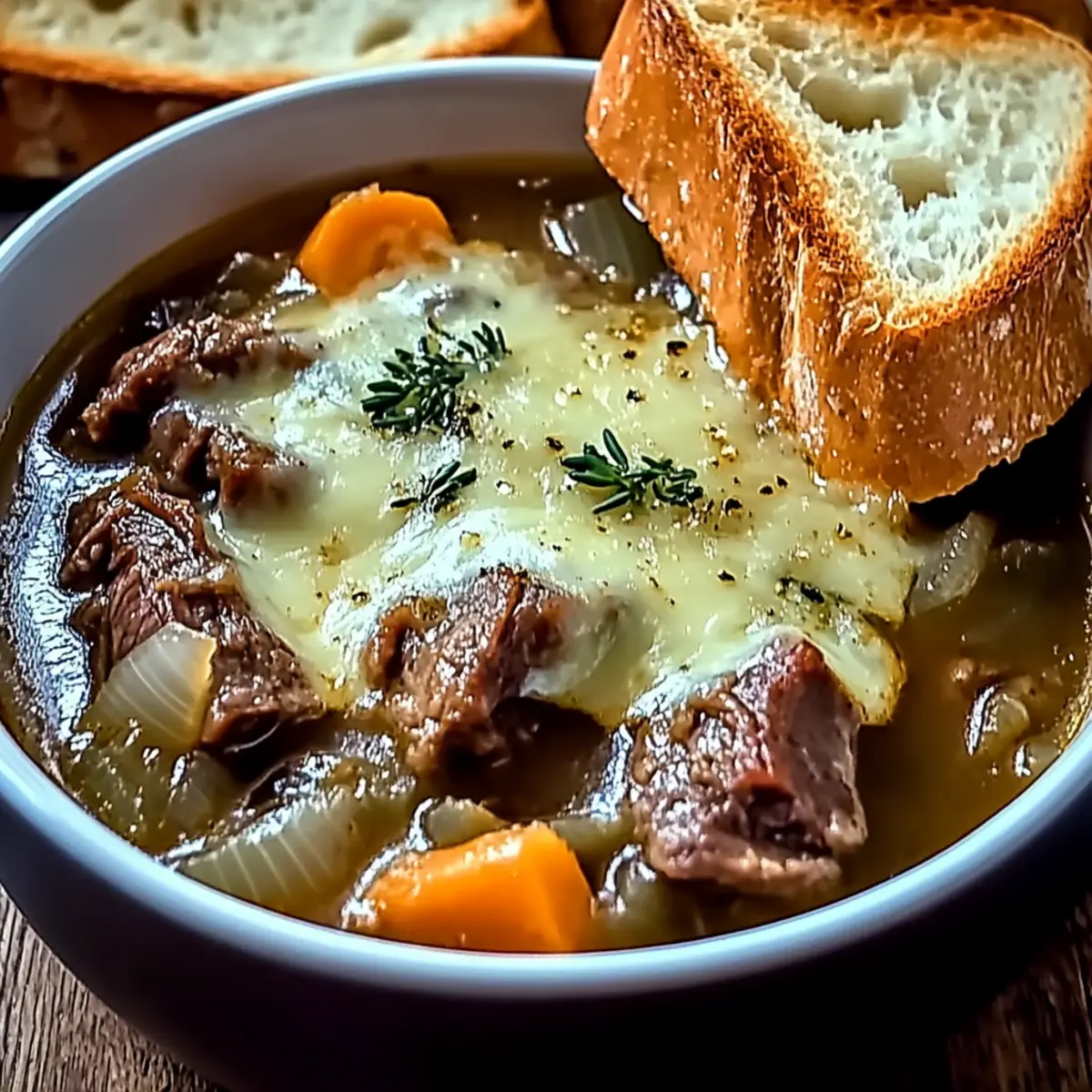Hearty Comfort: This French Onion Short Rib Soup embraces you with rich, soul-satisfying flavors, perfect for those seeking comfort after a long day.