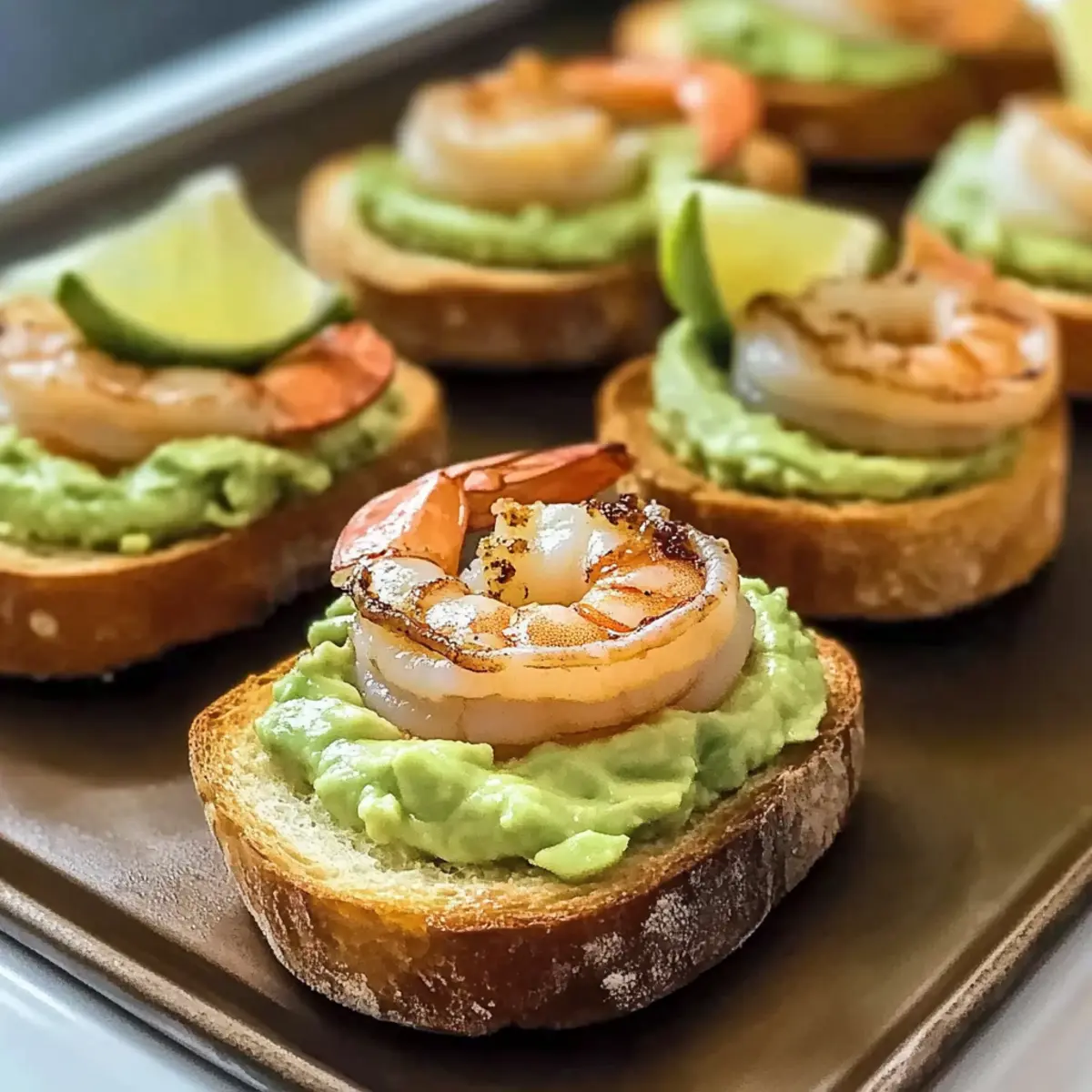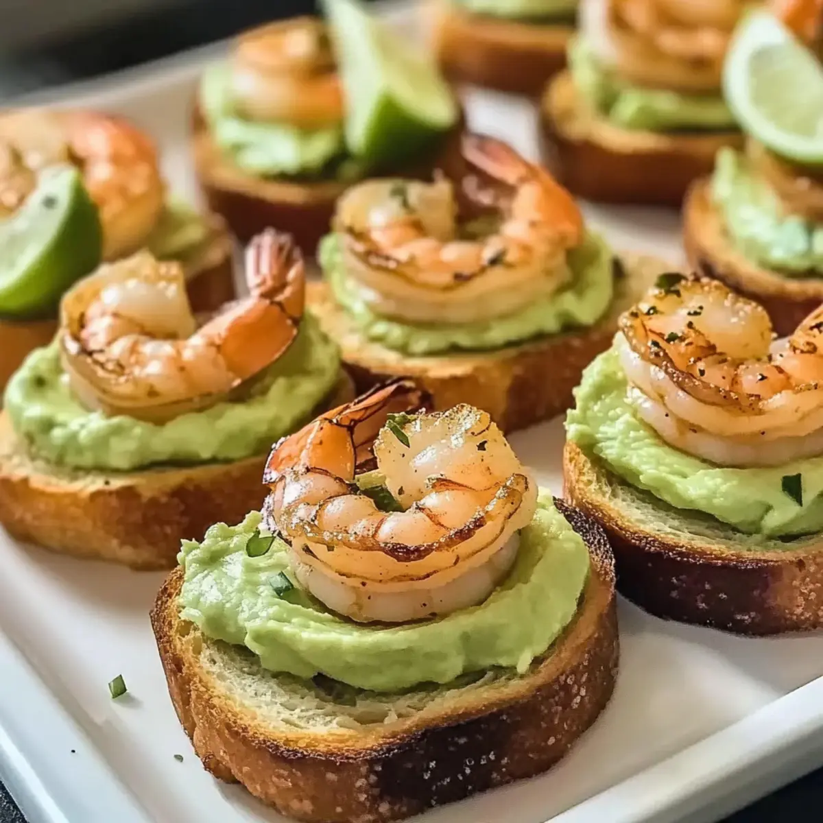 To keep your dish fresh, store the unassembled components—crostini, shrimp, and avocado topping—in separate airtight containers in the fridge for up to 1 day. This prevents sogginess and maintains the delightful textures!
