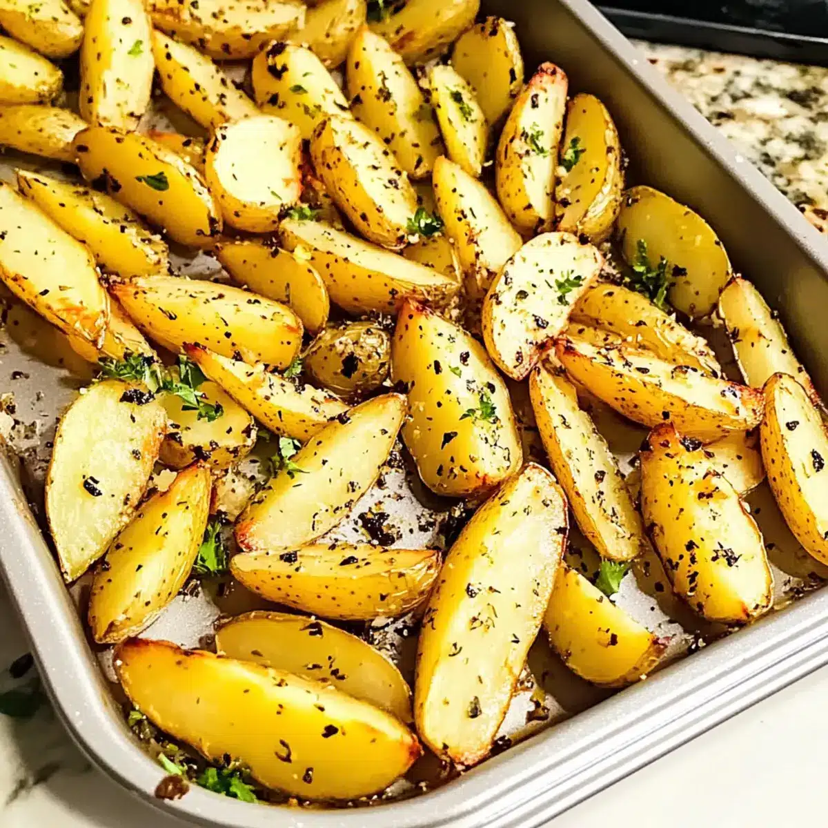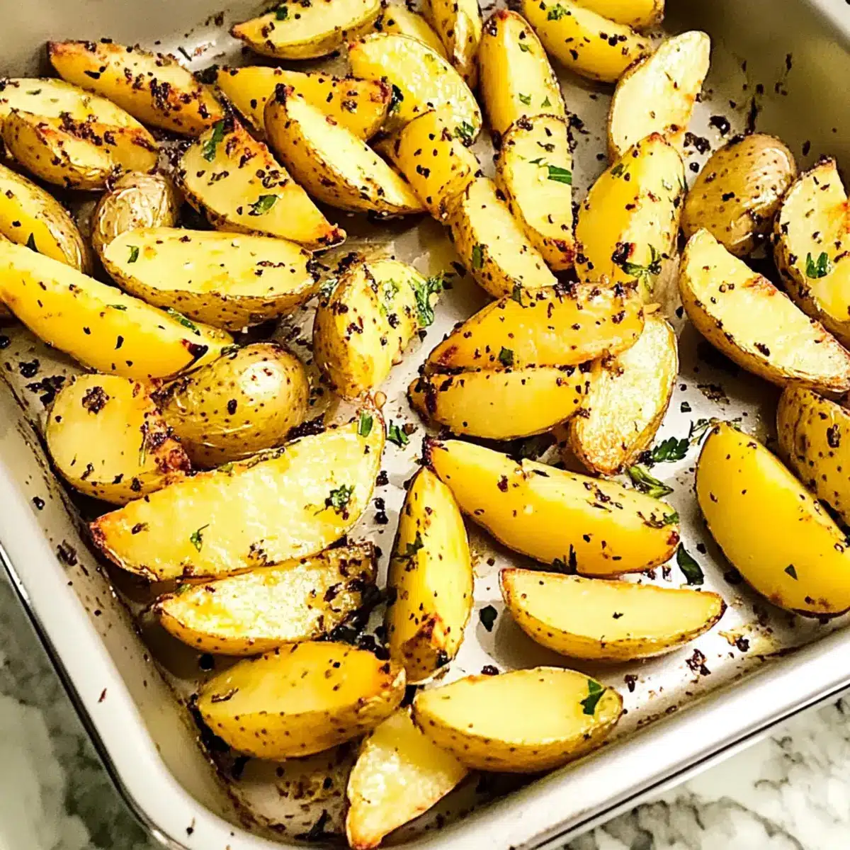 Savory Citrus Flavor: The bright lemon and earthy garlic come together to create a stunning flavor profile, making these potatoes a standout side dish.
