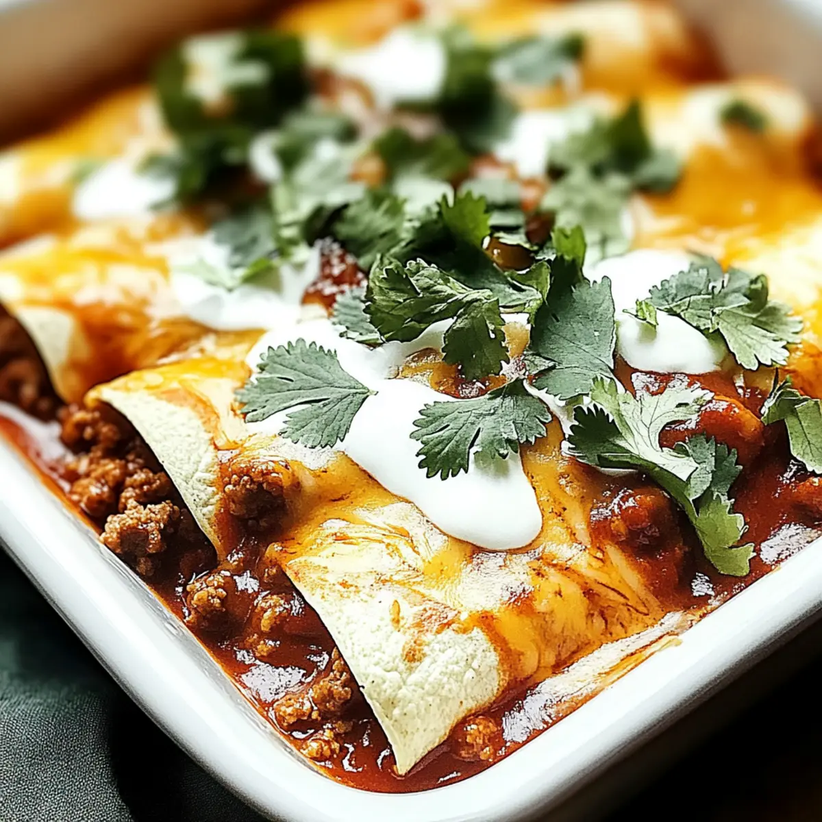 These Ground Beef Enchiladas are fantastic for meal prep enthusiasts! You can prepare the filling and roll the enchiladas up to 24 hours in advance, ensuring they are ready to pop in the oven when you need them. To do this, simply cook the beef mixture as directed, then assemble the enchiladas and cover them with sauce and cheese before refrigerating. This not only saves valuable time on busy weeknights but also allows the flavors to meld beautifully. Just remember to cover them tightly with plastic wrap or aluminum foil to maintain quality. When you’re ready to serve, bake them directly from the fridge, adding an extra 5 minutes to the cooking time for delicious, stress-free results!