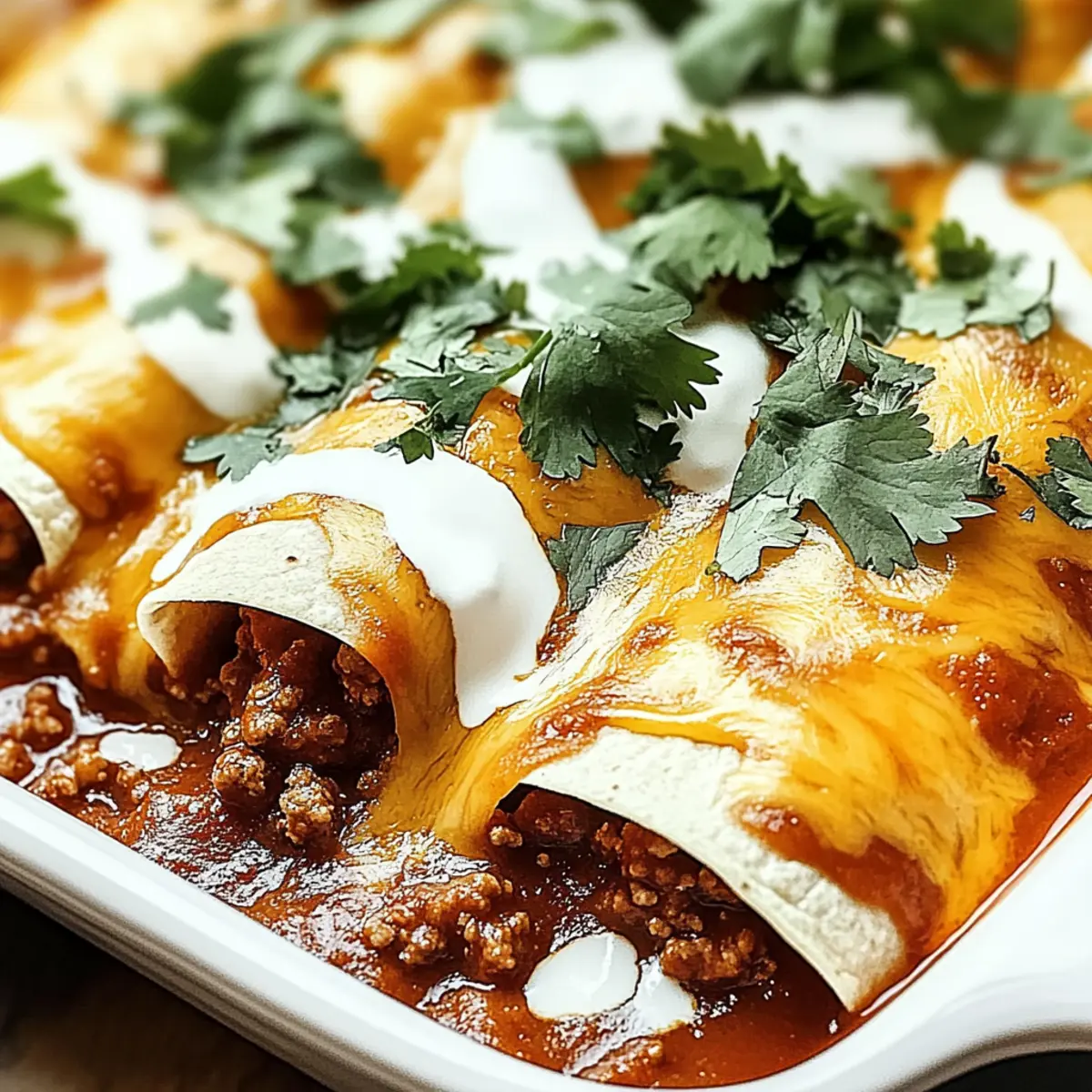 Absolutely! To freeze your Ground Beef Enchiladas, first assemble them completely and then wrap them tightly in plastic wrap or foil. Place them in a freezer-safe container or a zip-top bag, ensuring you remove excess air. They can be frozen for up to 3 months. To reheat, bake directly from frozen at 375°F (190°C) for 30-35 minutes until hot and bubbly, and enjoy the comfort of homemade enchiladas any time!