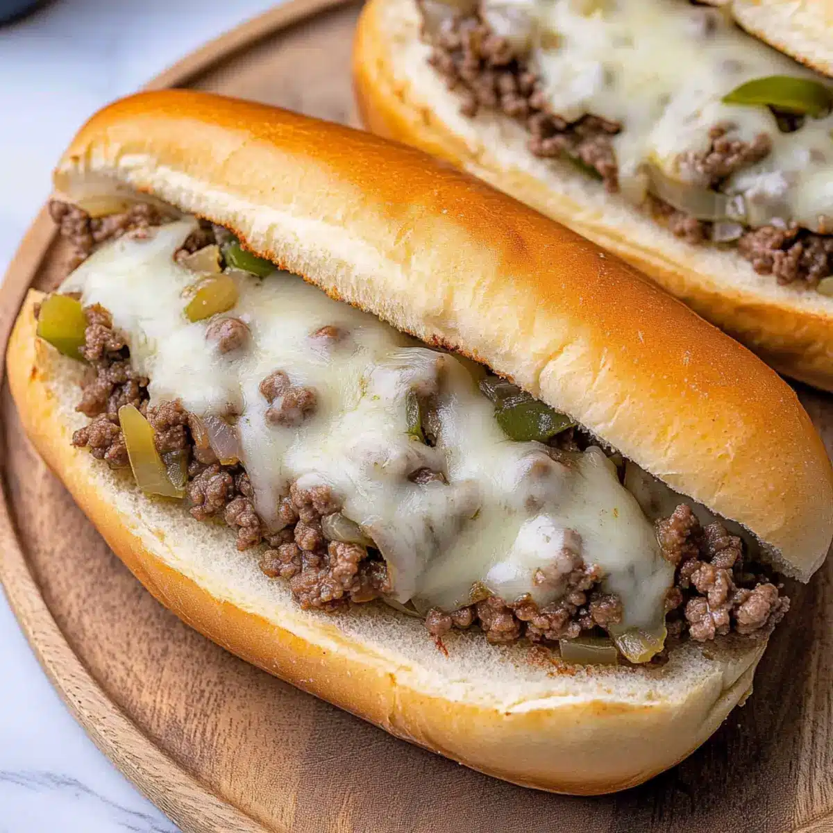 These Ground Beef Philly Cheesesteaks are perfect for meal prep enthusiasts! You can prepare the savory beef mixture up to 3 days in advance. Simply cook the ground beef with the onions and bell peppers, then stir in Worcestershire sauce and let it cool before transferring to an airtight container. Store it in the refrigerator until you’re ready to assemble your sandwiches. When you’re ready to serve, just reheat the filling on the stove and spoon it onto your hoagie rolls. Top with provolone cheese and bake for 3-5 minutes until everything is deliciously melted and warm. This simple prep will save you time on busy weeknights while maintaining the flavor and quality of your scrumptious cheesesteaks!