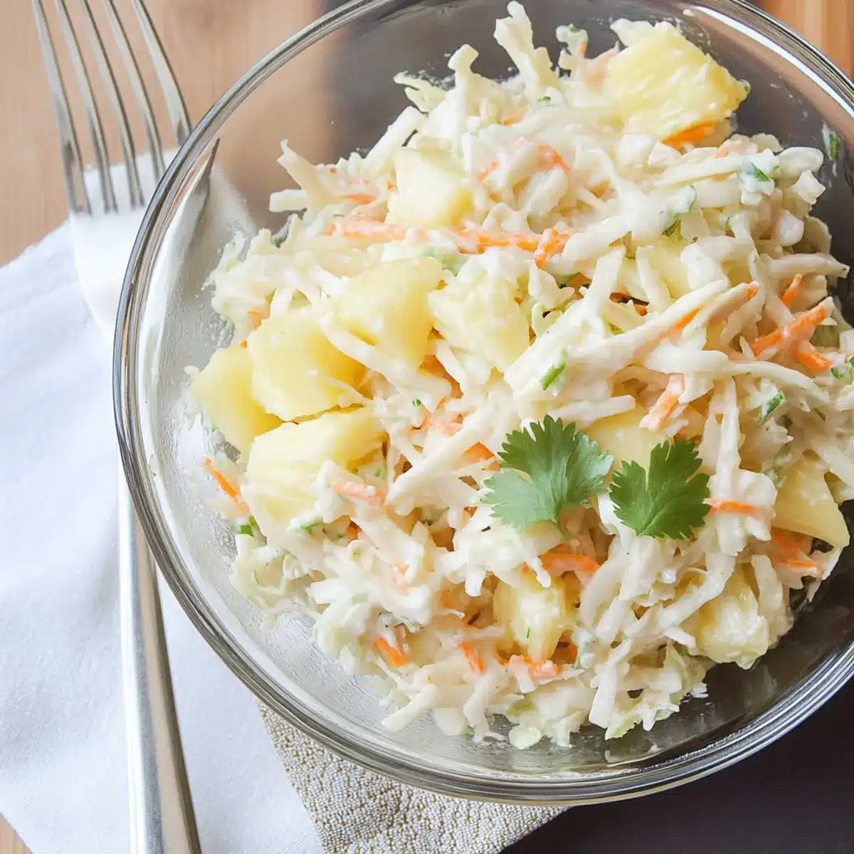Refreshing, Tropical Twist: This Hawaiian coleslaw brings a vibrant taste of the tropics to your summer gatherings.