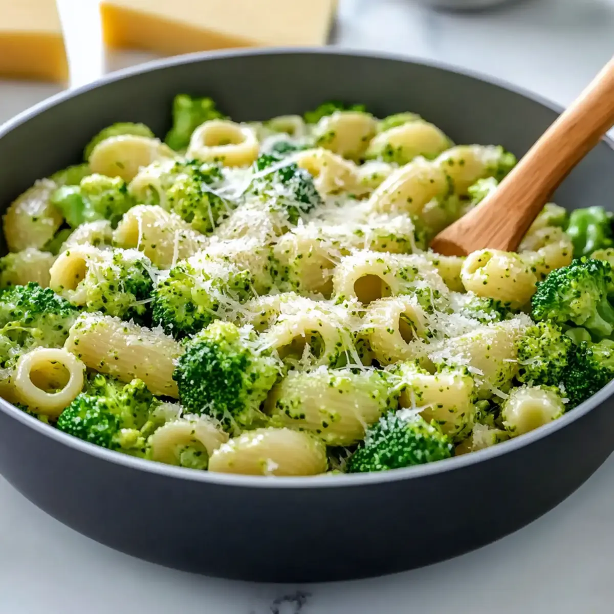 Transfer the drained pasta into the skillet with the broccoli mixture, and add in freshly grated Parmesan cheese. Toss everything together gently over low heat until well combined, allowing the cheese to melt and coat the pasta evenly, creating a delightful dish that’s both colorful and delicious.