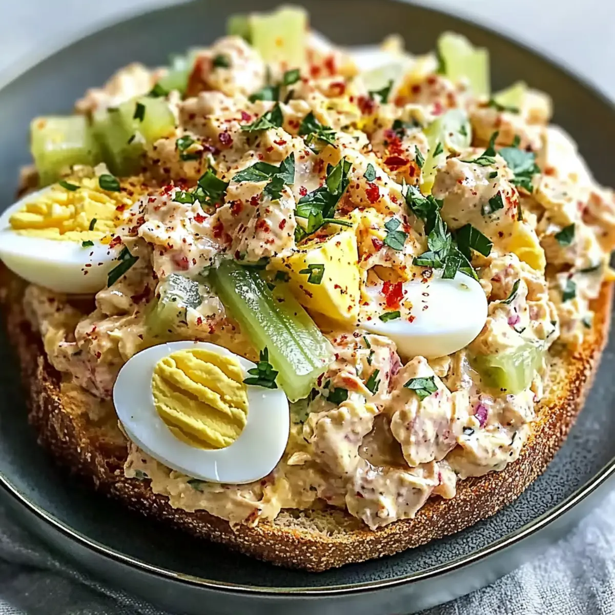 Crispy Whole-Grain Toast: Toast provides the perfect crunchy base, complementing the creamy salad and giving each bite a satisfying crunch.