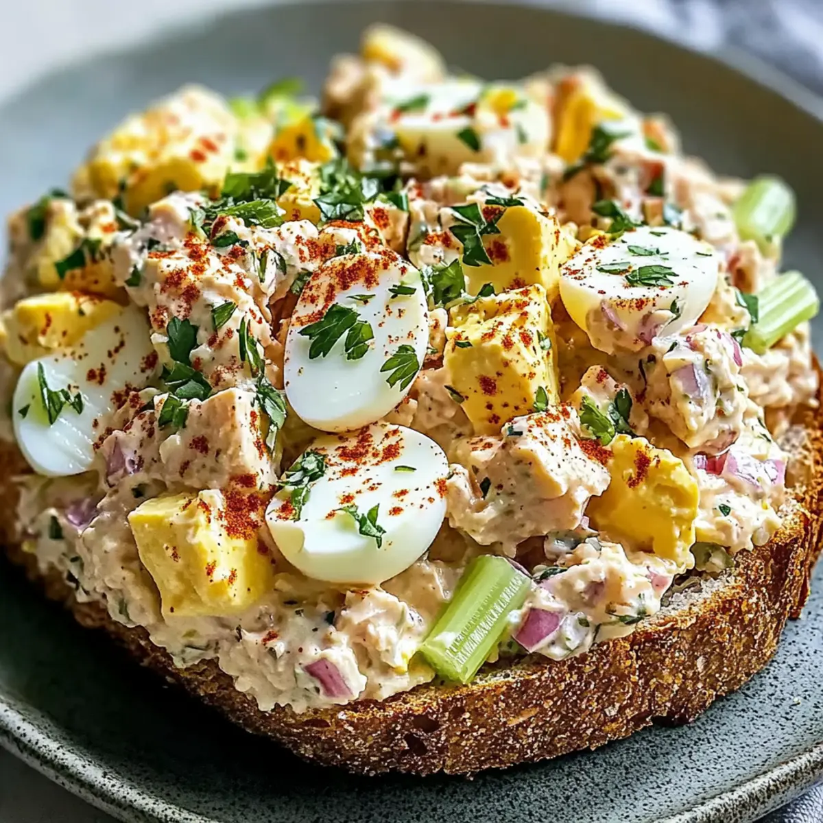 Sliding into lunchtime with a bowl of this Healthy Tuna Egg Salad feels like a warm hug on a busy day. This creamy, easy, and oh-so-delicious recipe has made its way into my weekly rotation, evoking memories of sunny picnics and leisurely dinners. Whipping up this meal takes just 15 minutes, making it the perfect quick fix when I’m craving something hearty yet wholesome. Packed with protein and healthy fats, this salad isn’t just filling; it’s also incredibly versatile—perfect on crusty whole-grain toast or nestled in crisp lettuce wraps. Want to discover how you can transform simple pantry staples into a delightful dish that brightens your day? Let’s dive into this easy homemade goodness!