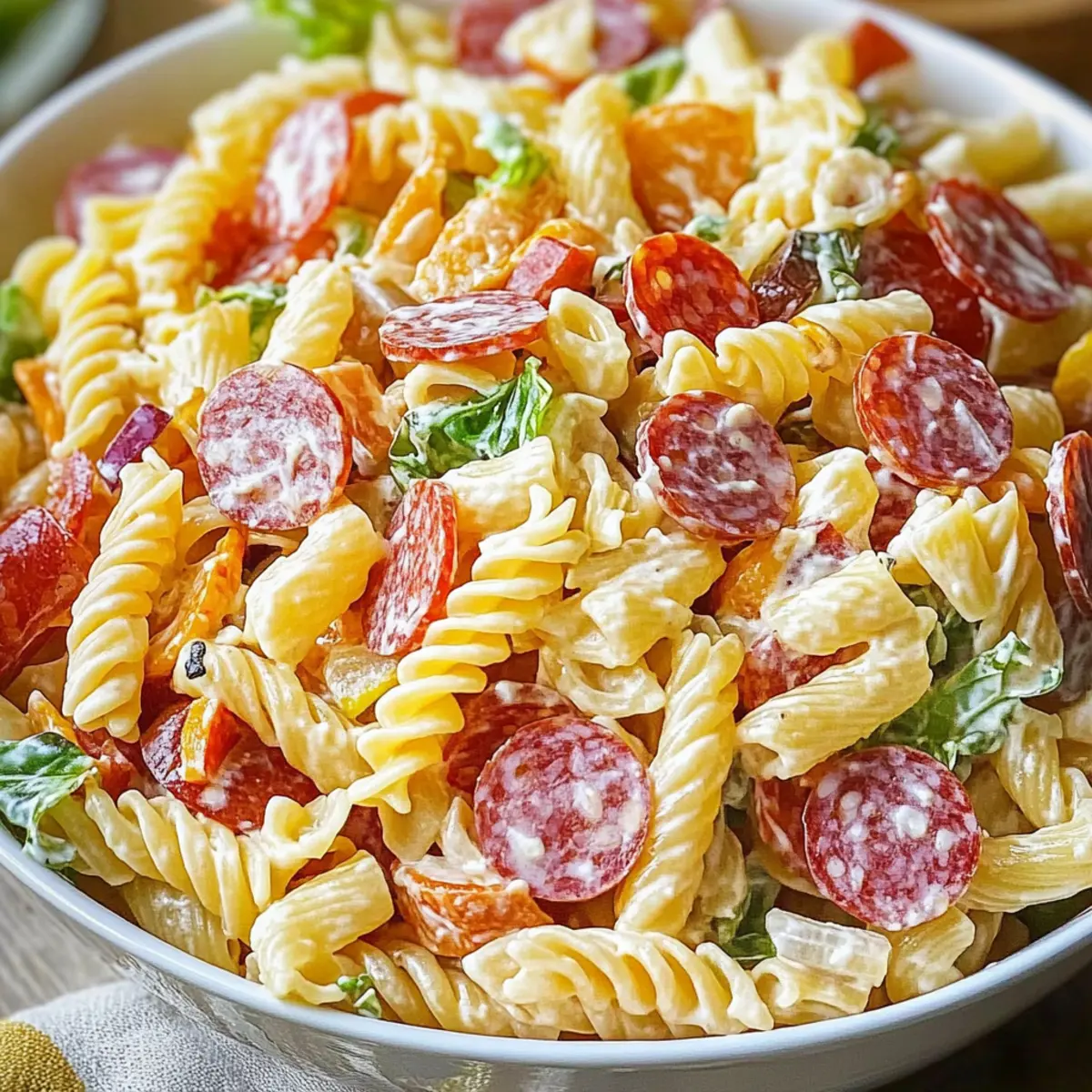 - Vegetarian Twist: Omit the meats altogether and enhance the salad with extra veggies like bell peppers and chickpeas for a hearty vegetarian option.
