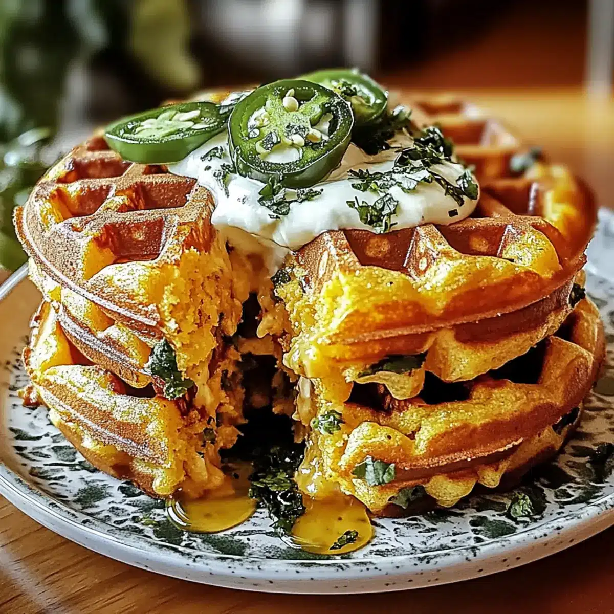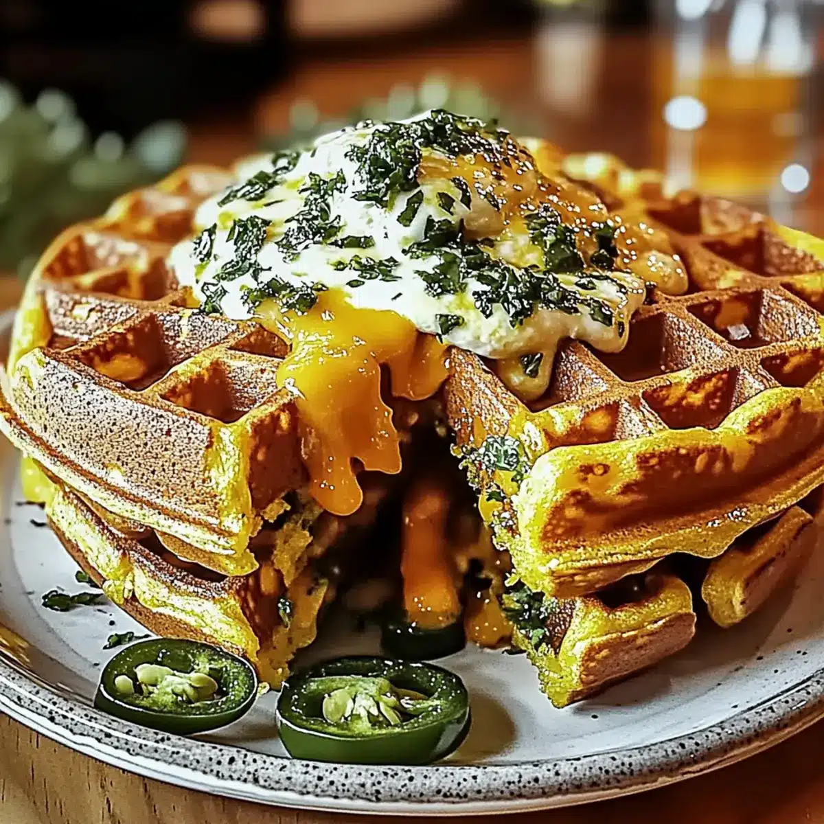 - Maple Syrup: Drizzle warm maple syrup over the waffles for an unexpected sweet contrast, enhancing the deliciousness of the cheddar and jalapeño combination.