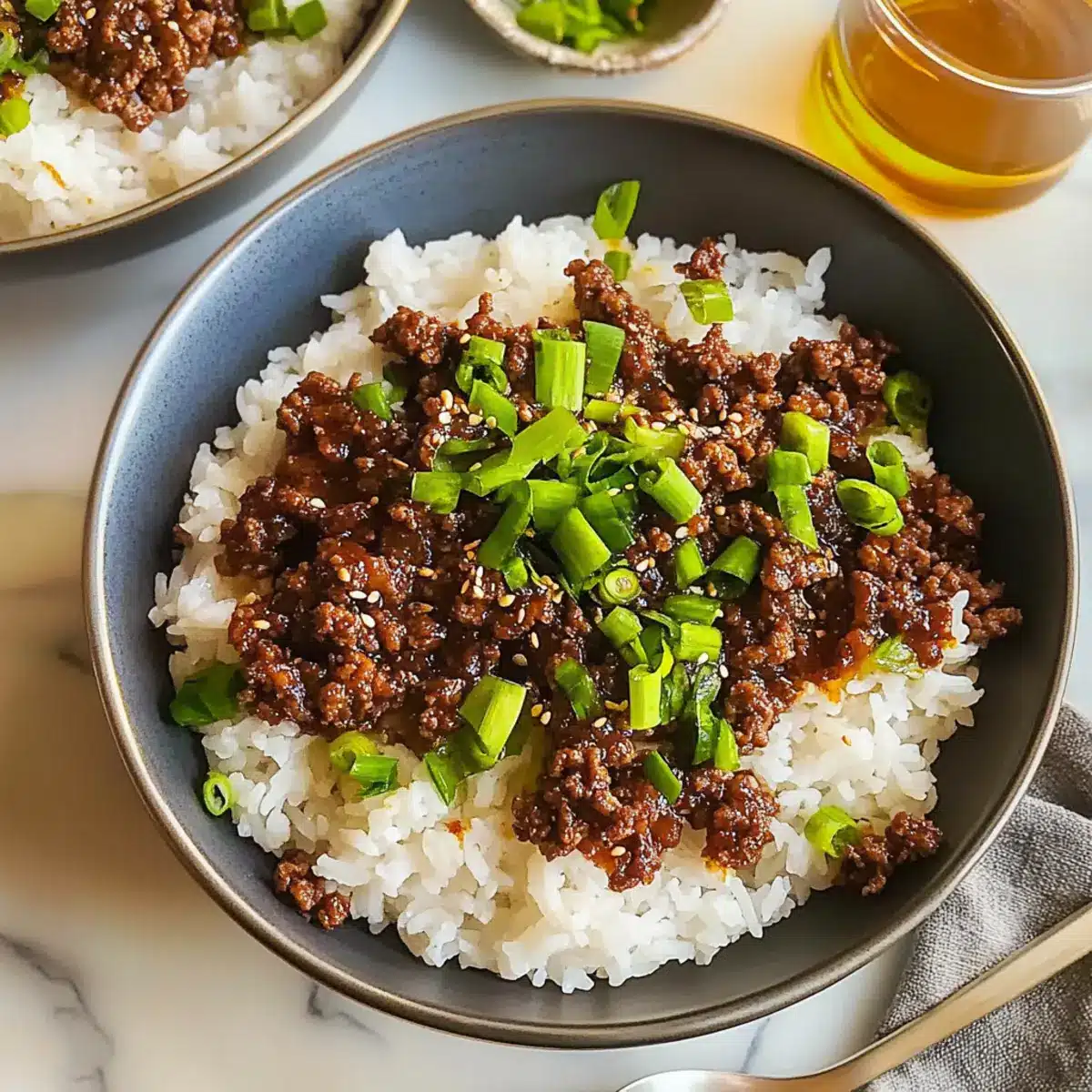 These Quick Korean Beef Bowls are fantastic for meal prep enthusiasts! You can prepare the sauce up to 24 hours in advance by whisking together the brown sugar, soy sauce, sesame oil, red pepper flakes, and ginger, then refrigerating it in an airtight container. Additionally, cooking the ground beef can be done up to 3 days before serving; simply sauté it until browned and allow it to cool before refrigerating. To maintain quality, avoid adding green onions and sesame seeds until you’re ready to serve. When it’s time to enjoy your Korean Beef Bowl, just reheat the beef mixture, stir in the sauce, and serve over fresh rice for an effortless and delicious meal!
