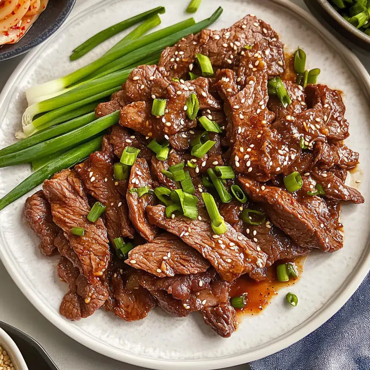 The air was filled with the mouthwatering scent of sweet and savory grilling as I strolled past a bustling Korean BBQ joint, making my stomach growl in envy. This nostalgic aroma inspired me to recreate one of my favorite dishes at home: Korean Beef Bulgogi. With its tender, thin slices of beef marinated in a quick and easy marinade, this dish offers the perfect solution for those busy weeknights when you crave something comforting and delicious. Not only does it cook in minutes, but it also brings a taste of Korean BBQ straight to your table, allowing you to impress family and friends effortlessly. Serve your Bulgogi with a fluffy portion of rice or crisp lettuce wraps, and watch everyone gather around, ready to dig in! Curious how to make this delightful dish? Let’s dive into the recipe!