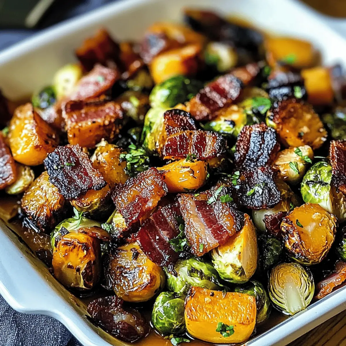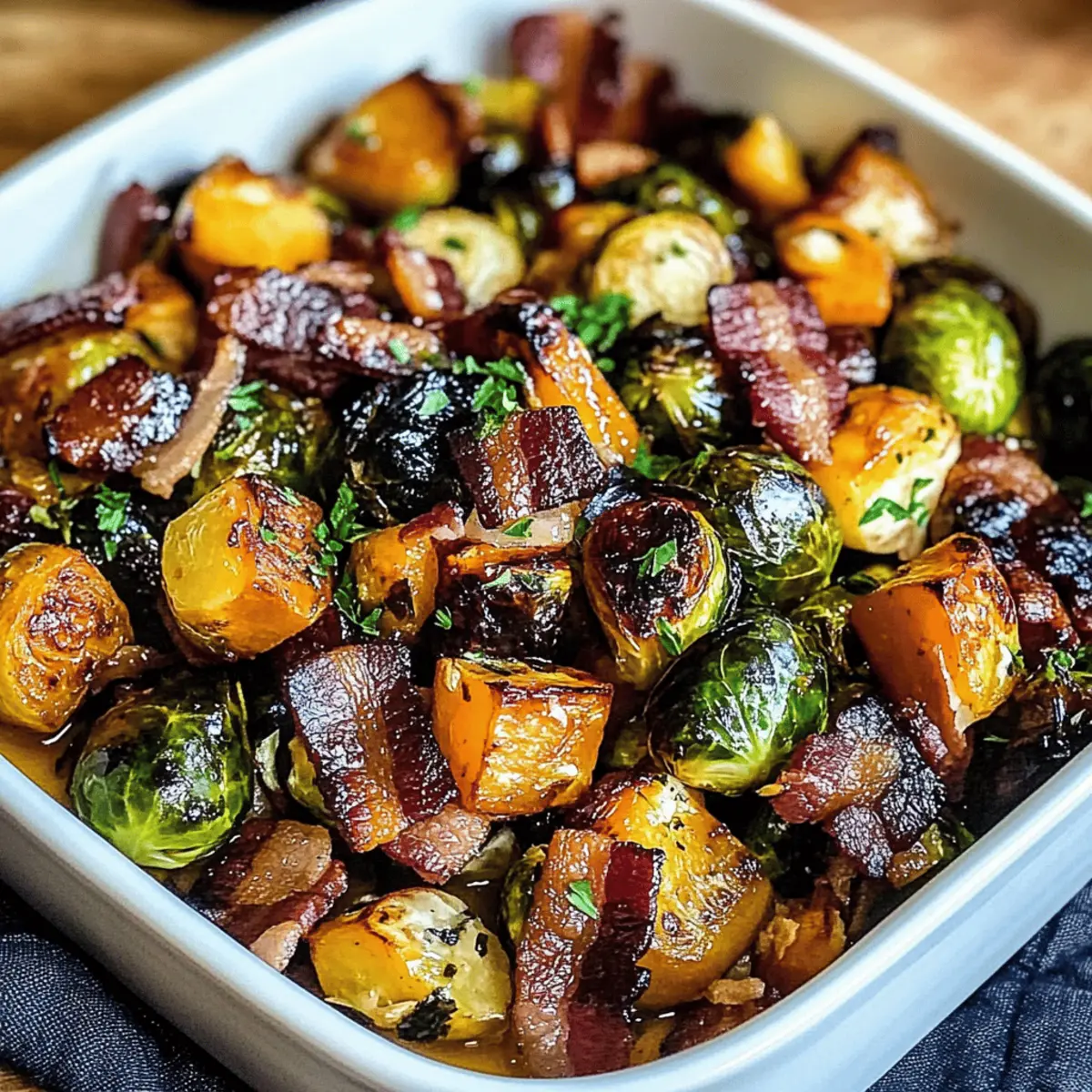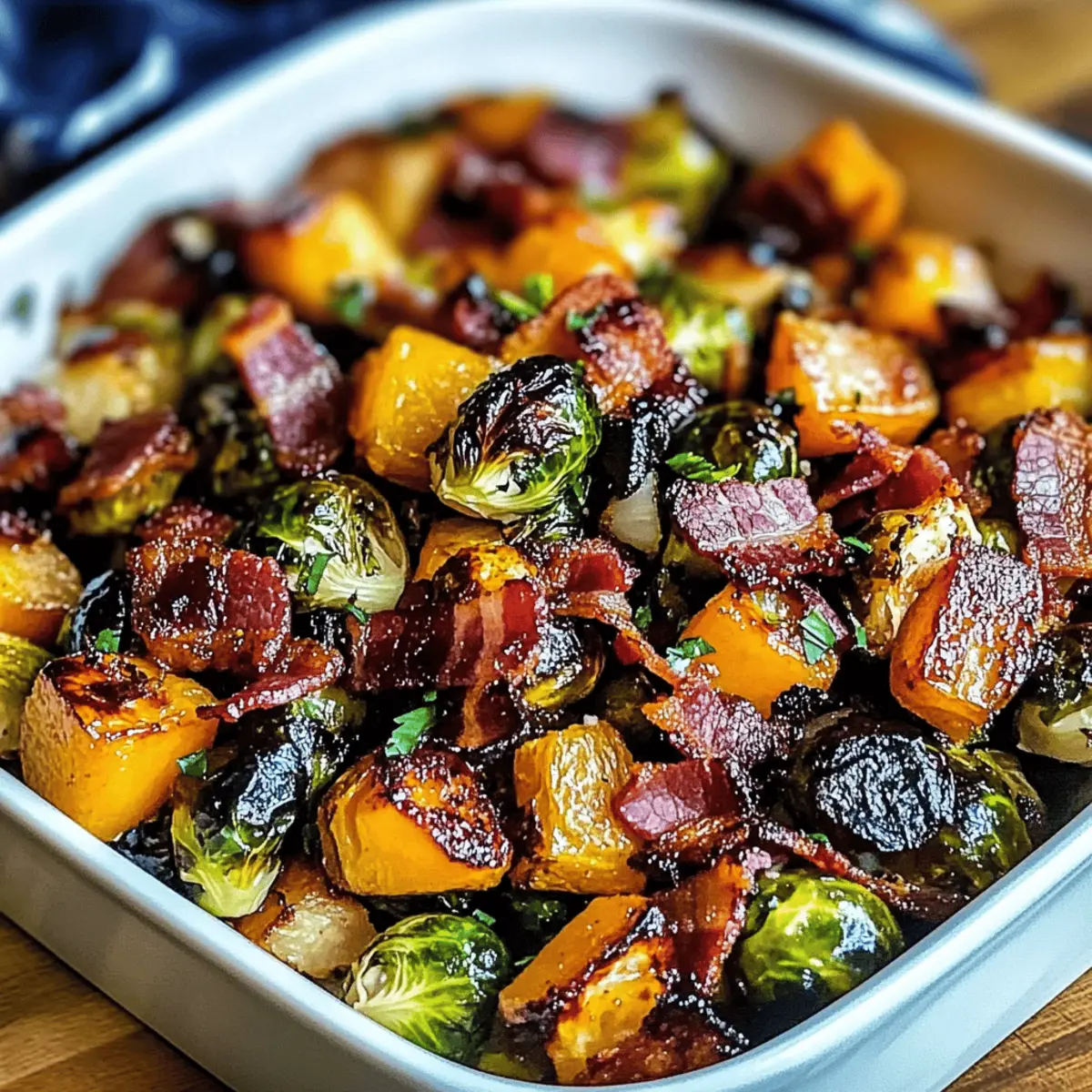Embrace the cozy flavors of this Maple Butternut Brussels Bacon recipe in your kitchen!