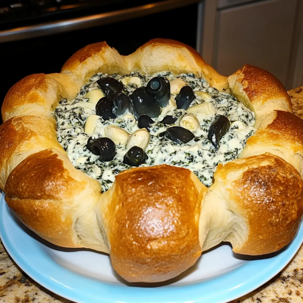 Deliciously Cheesy: The warm spinach artichoke dip nestled in the bread bowl oozes rich flavor, making it irresistible for kids and adults alike.