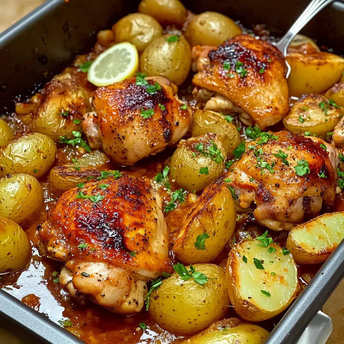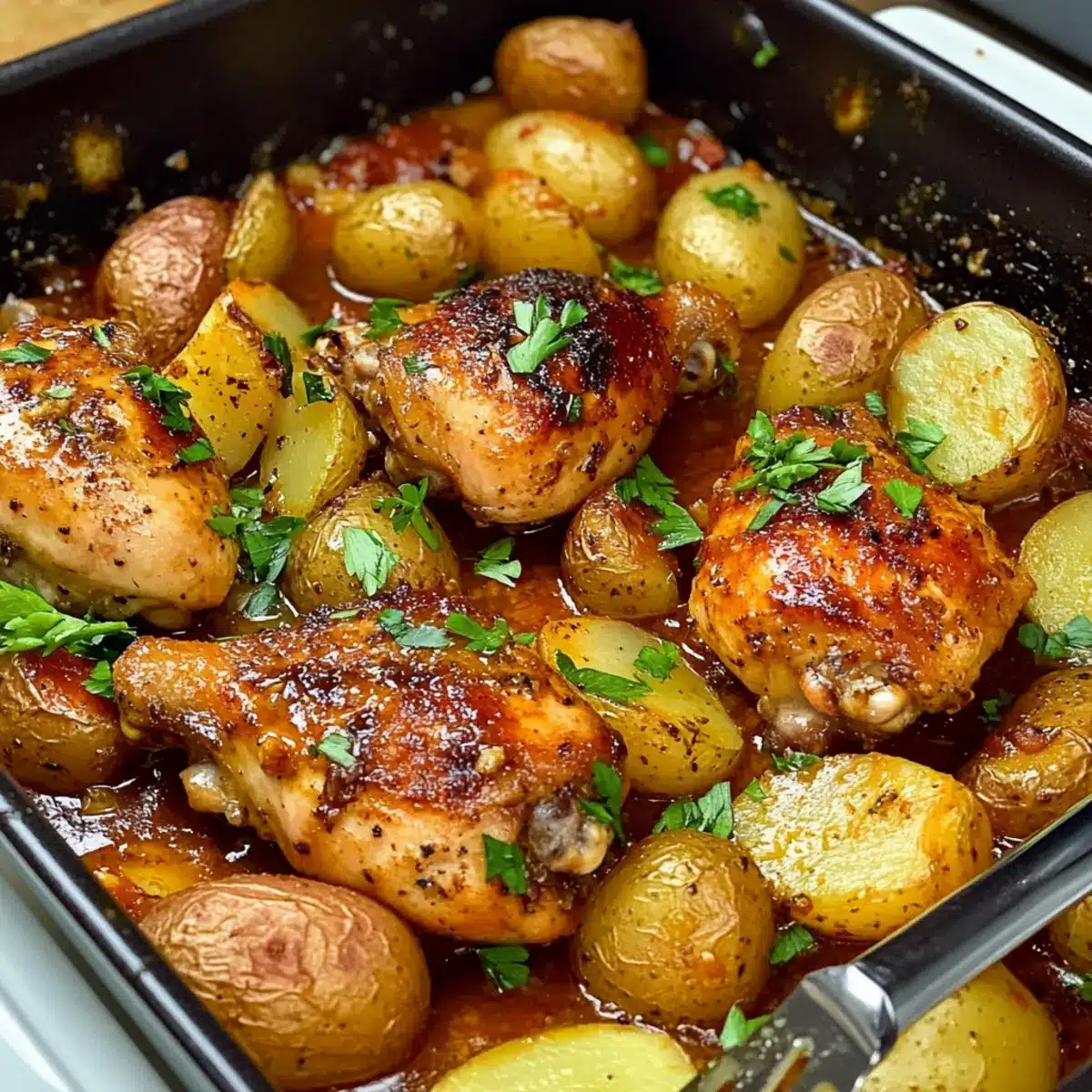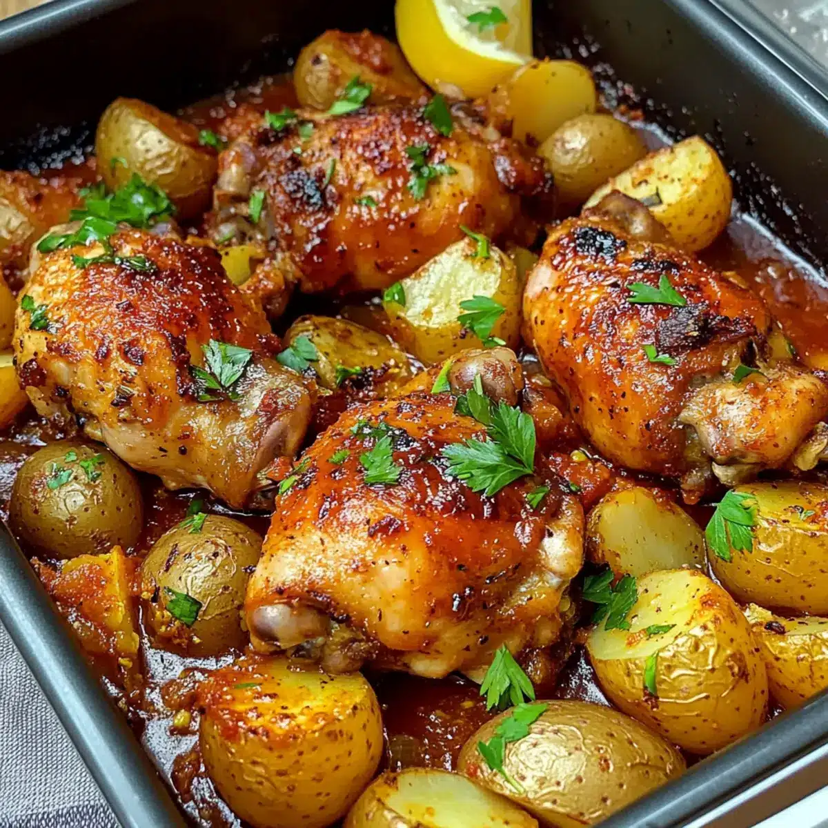 Seasonal Vegetables: Toss in seasonal veggies like bell peppers or carrots alongside the chicken and potatoes for extra color and nutrients. They’ll soak up the flavorful sauce, making every bite a delightful surprise.