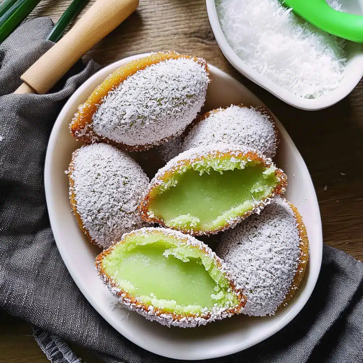 Nutty Surprise: Fold in crushed macadamia nuts or toasted almonds into the batter for added crunch and flavor. These nuts pair beautifully with the delicate pandan and coconut.