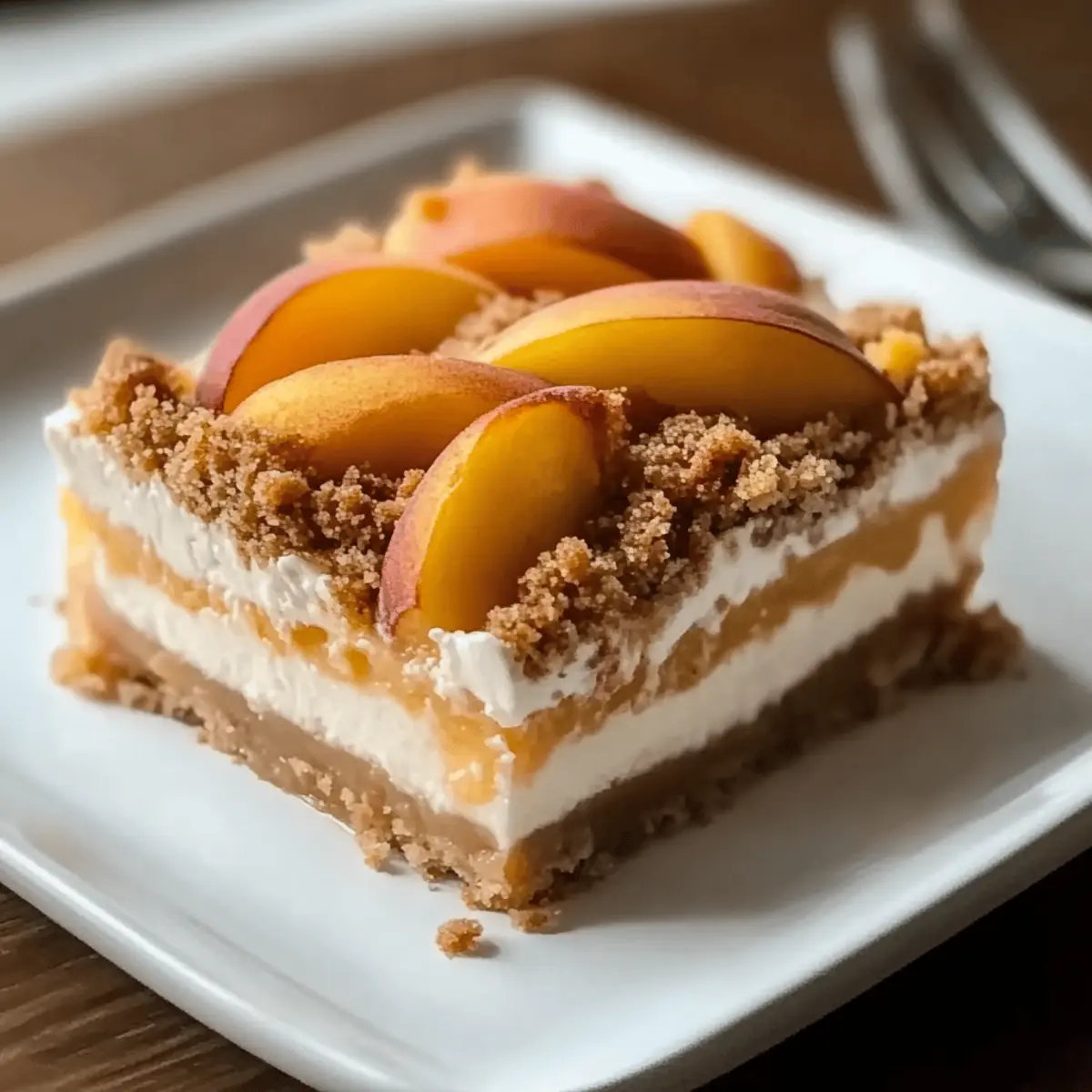Imagine savoring these delightful bars that marry creamy cheesecake with juicy peaches, perfect for summer gatherings.