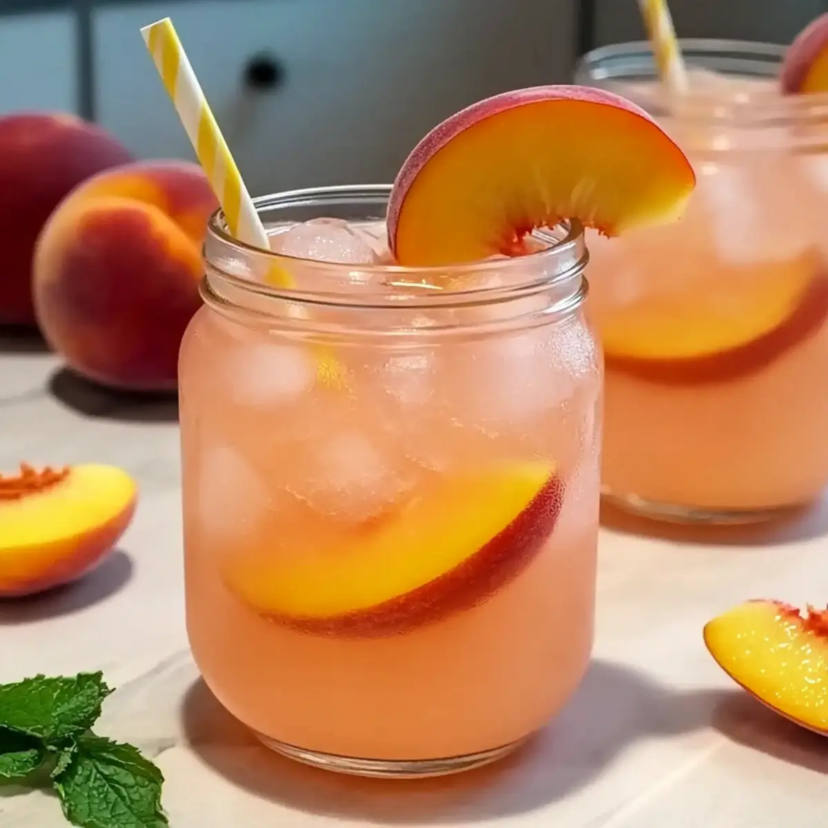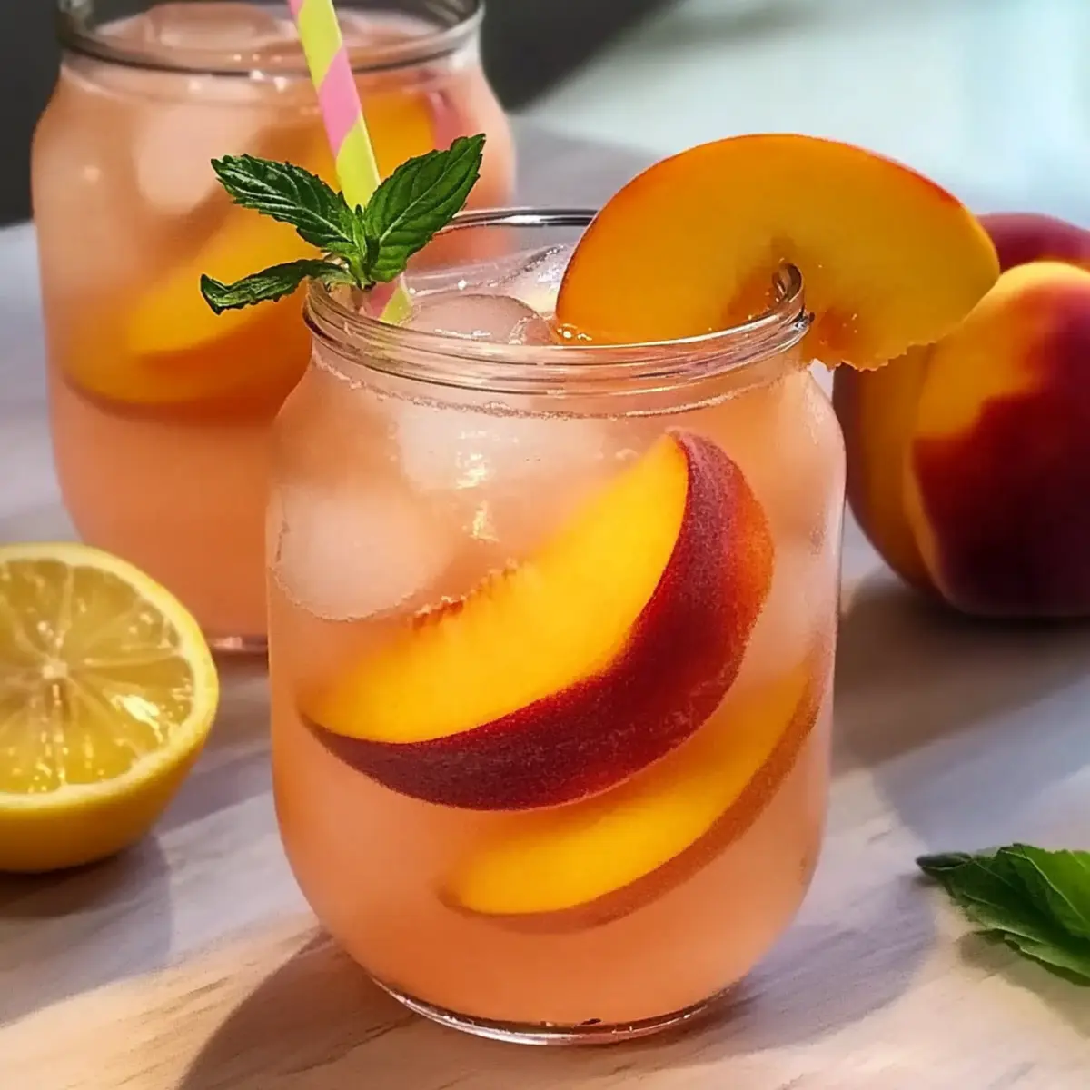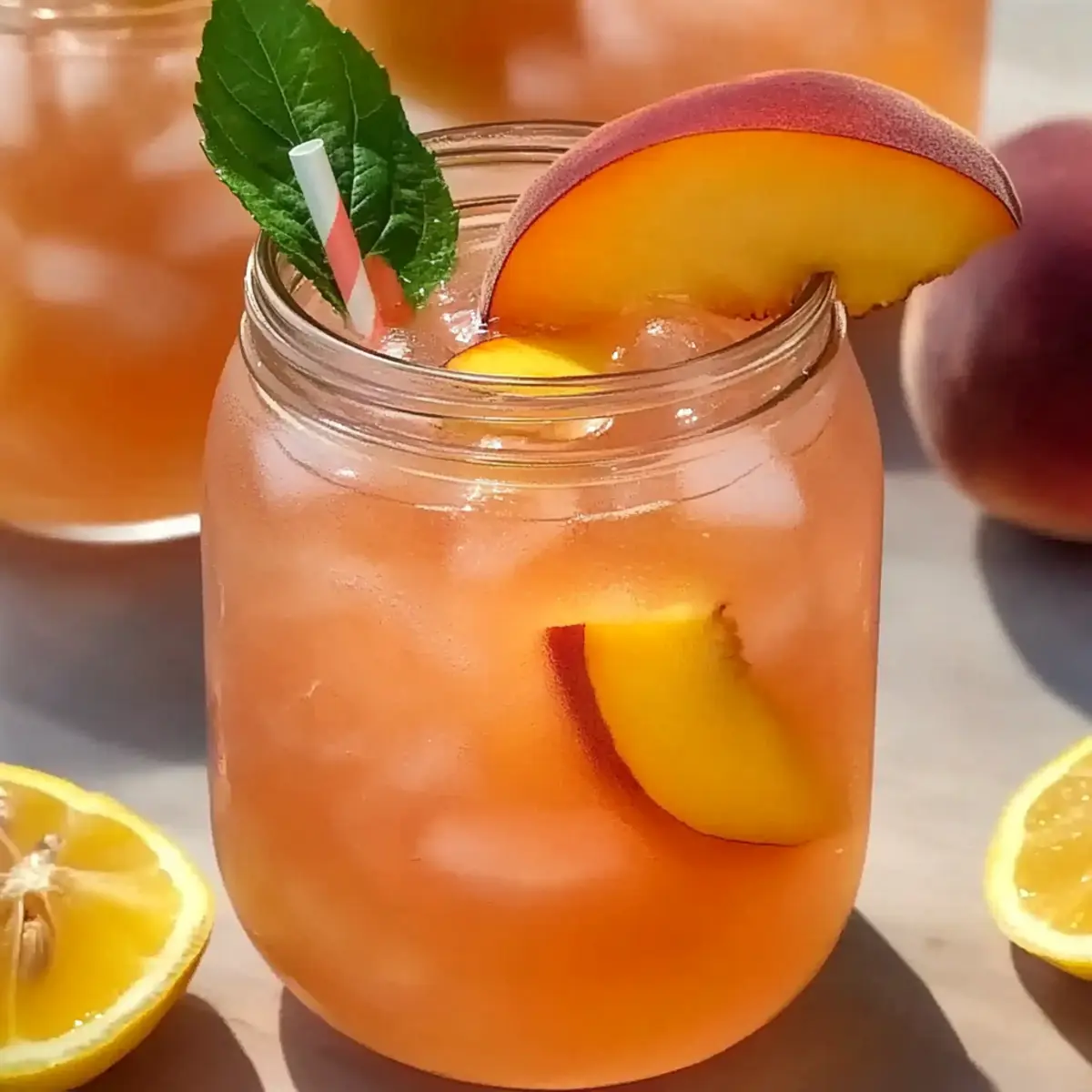 - Garnish each serving with fresh mint leaves, lemon slices, and extra peach slices.