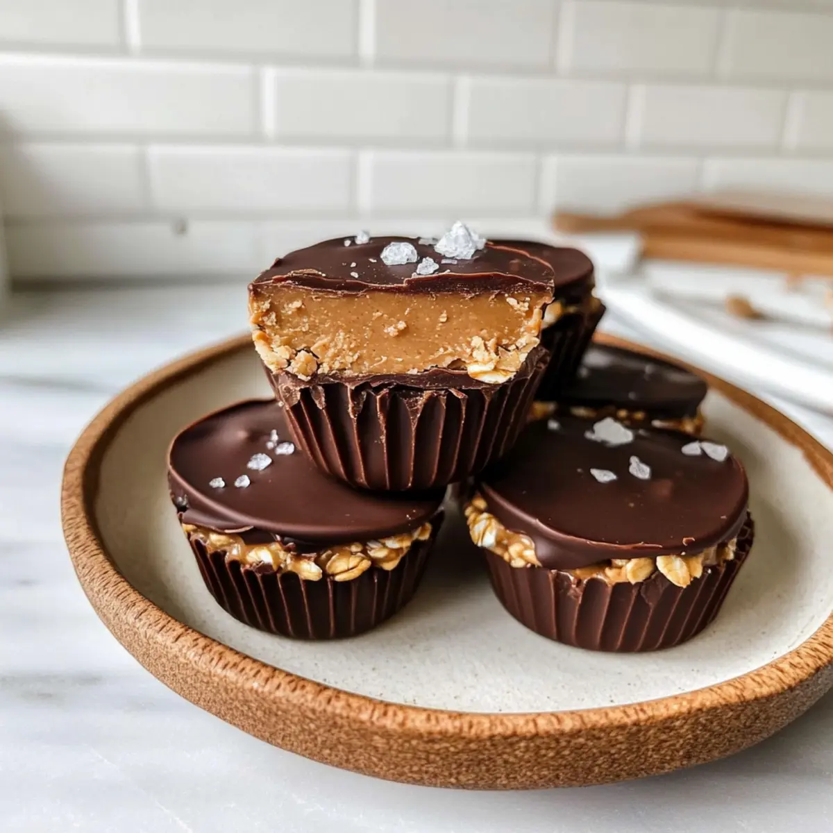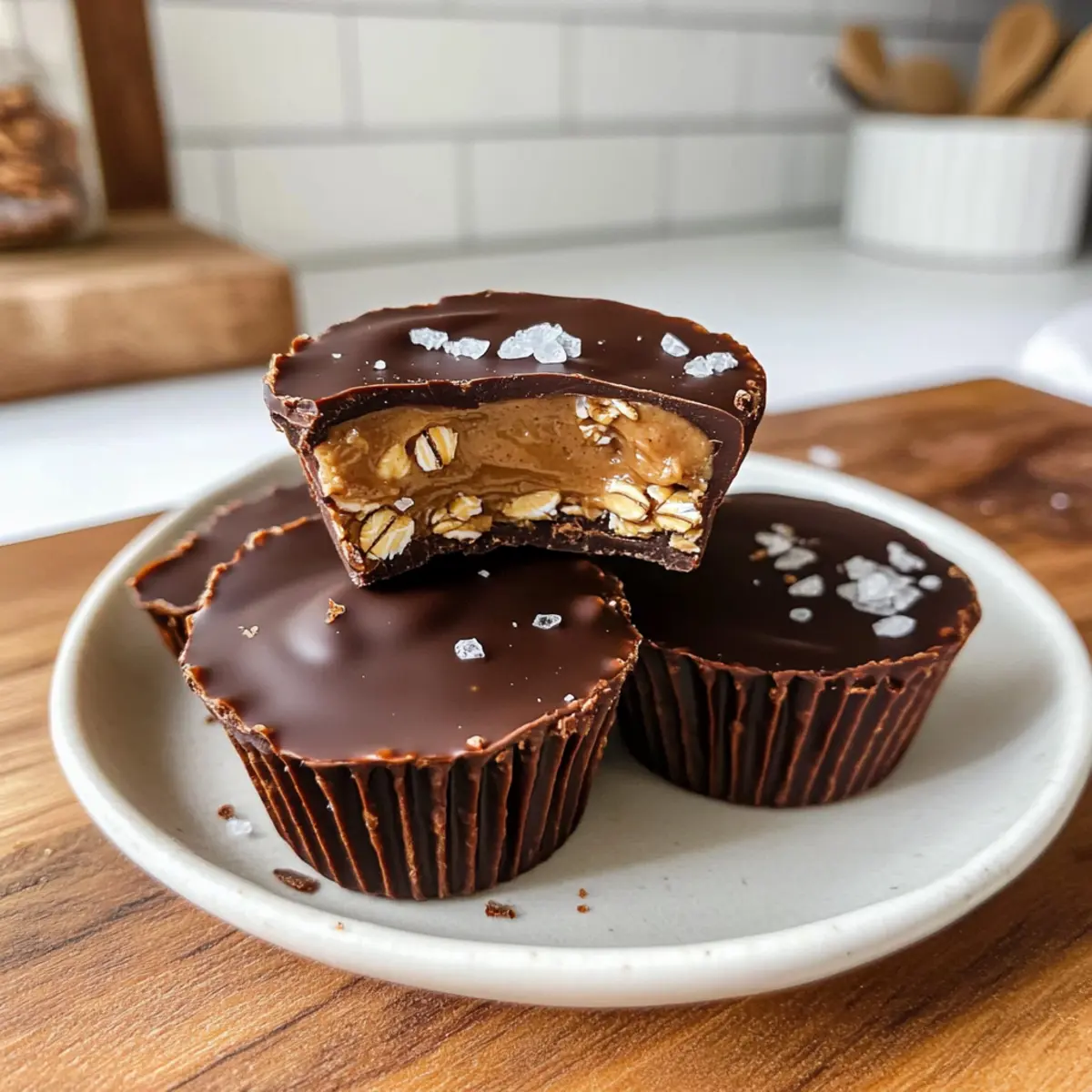 Once the chocolate is set, gently pop the Peanut Butter Oat Cups out of the molds. Optionally, sprinkle a pinch of flaky sea salt on each cup for an added burst of flavor. These cups can be enjoyed right away or stored in an airtight container. Indulge in your delicious, homemade snacks that are sure to delight everyone!